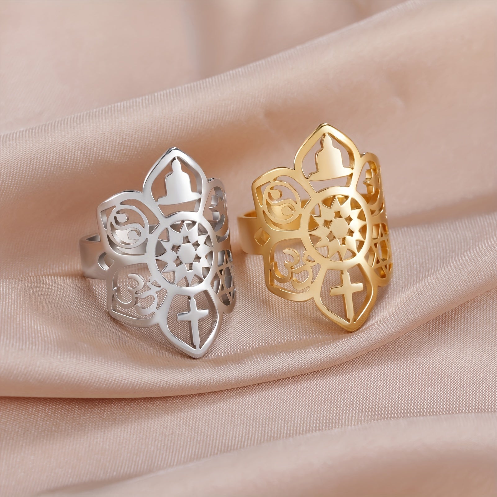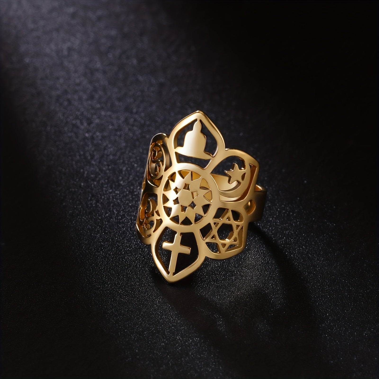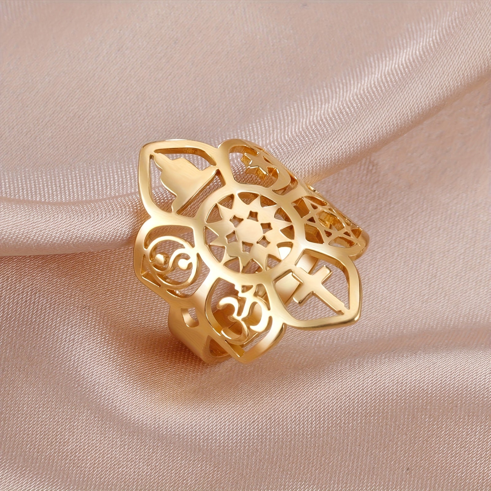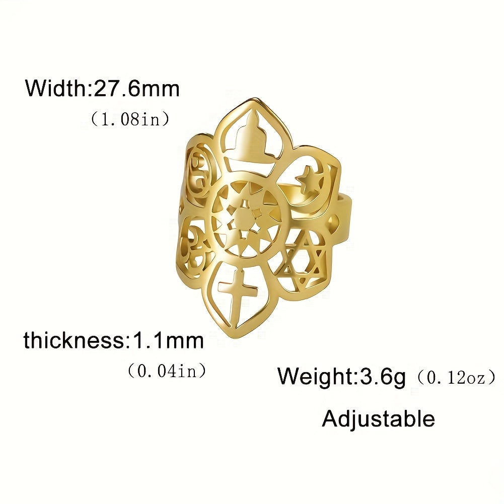 Add a touch of boho style to your look with this adjustable charm ring. Made of stainless steel with 18K golden plating, this ring is perfect for men who appreciate unique and stylish accessories.
