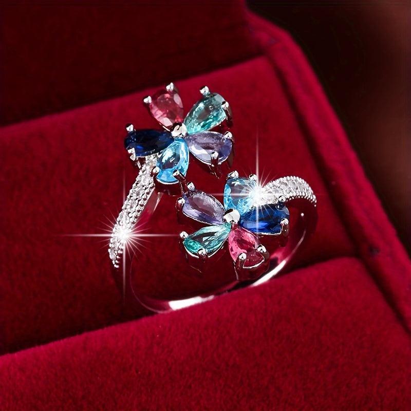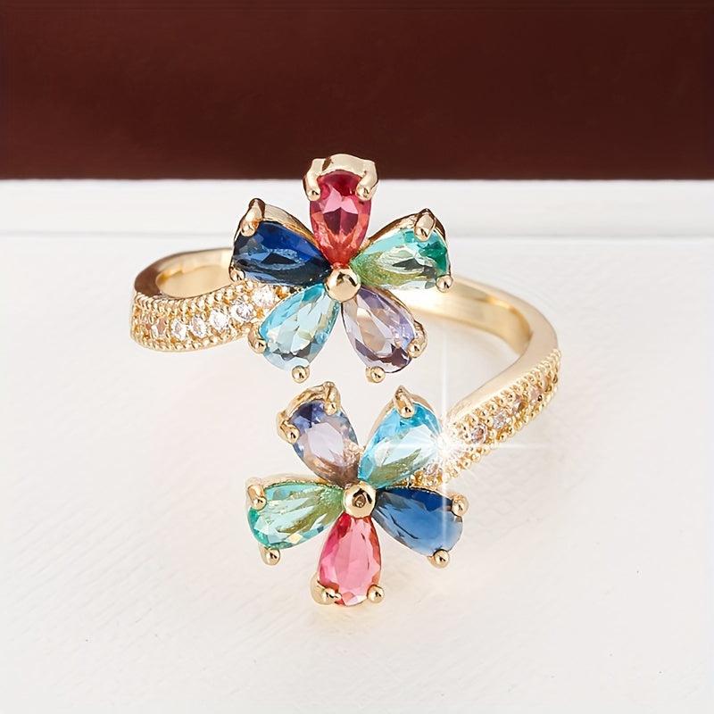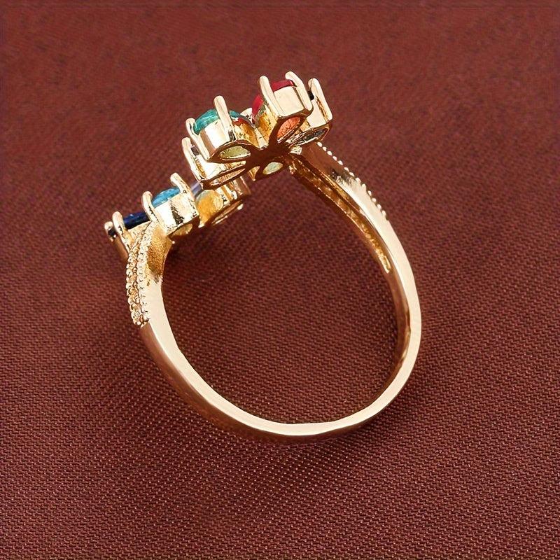 Elegant copper ring featuring synthetic zircon mosaic design. Adjustable size suitable for all season wear and casual occasions. Perfect for gifting to loved ones.