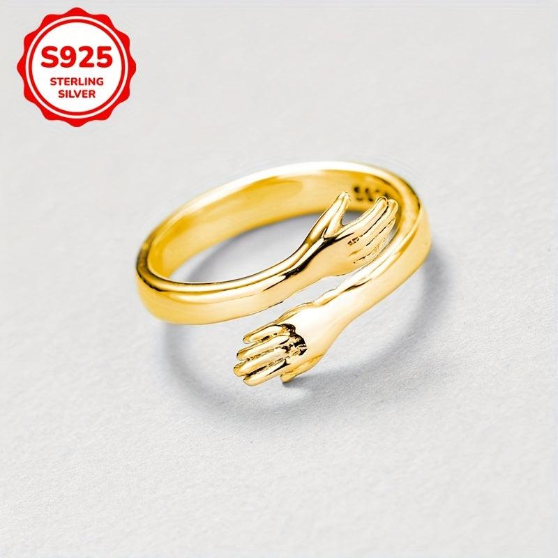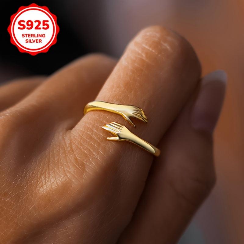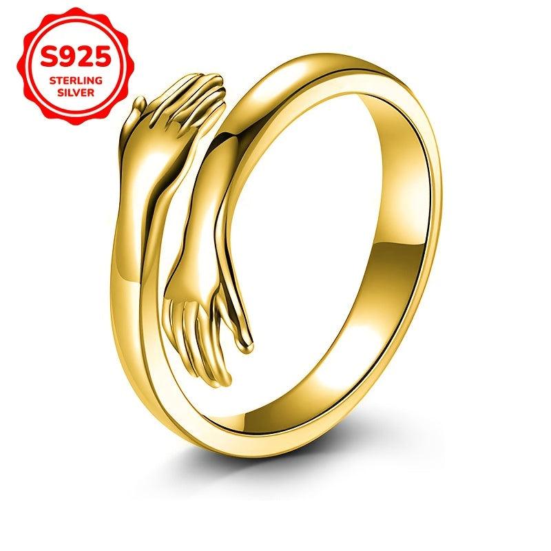 This stylish adjustable ring features a golden-toned 925 sterling silver design, perfect for daily wear or special occasions. An ideal gift for women.