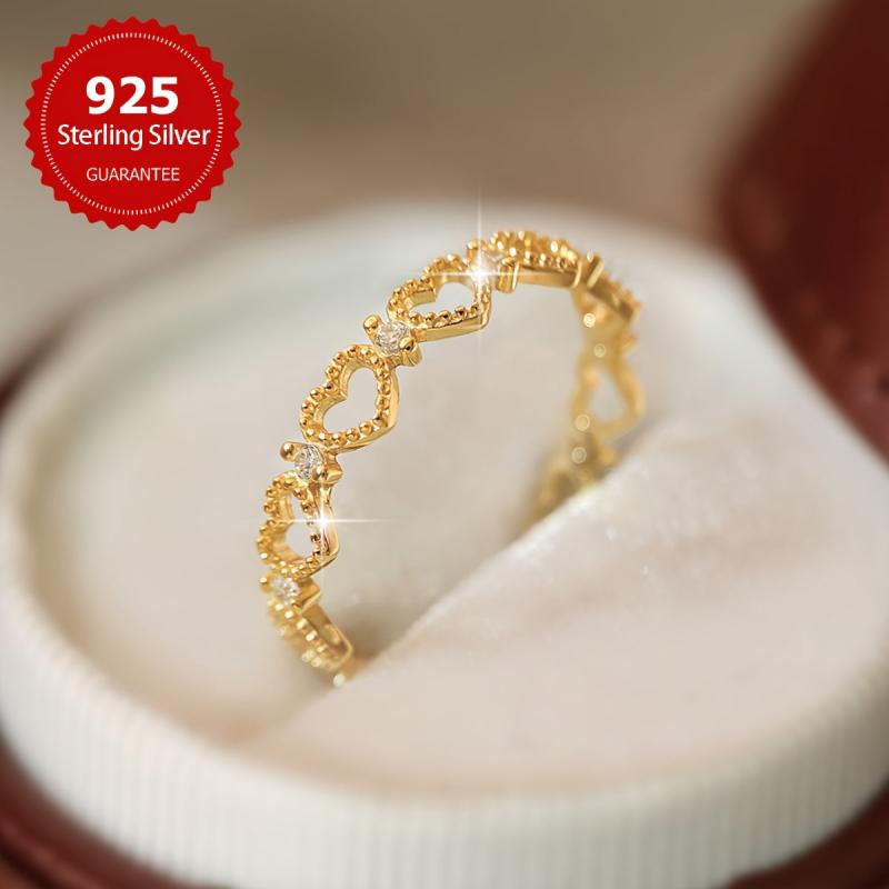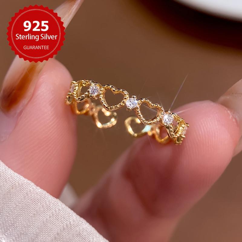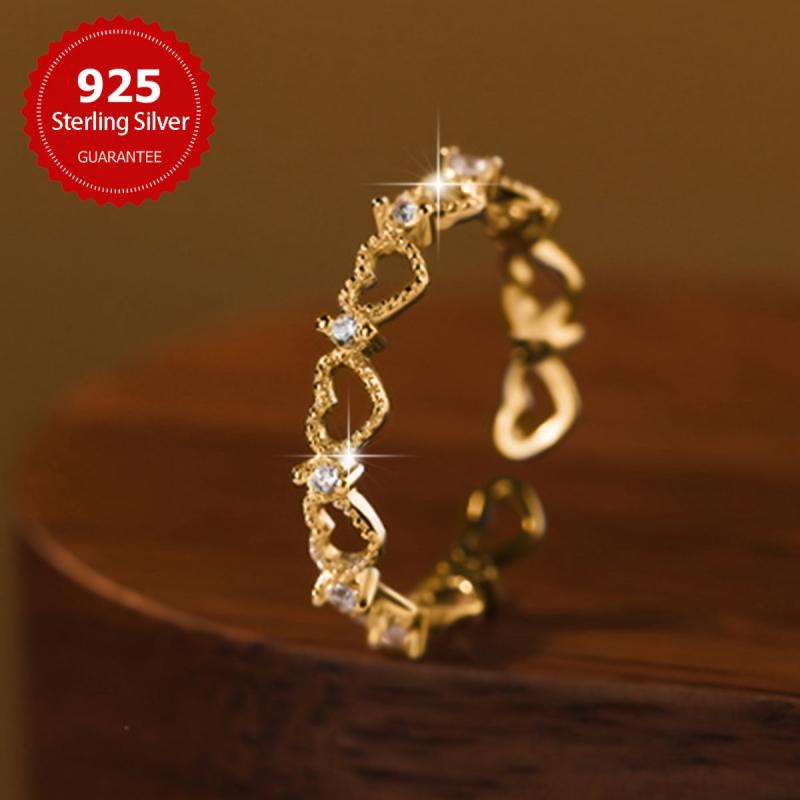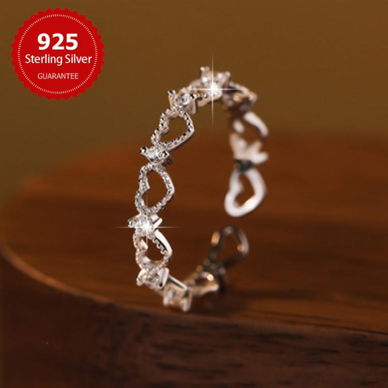 Adjustable Heart Ring S925 Sterling Silver CZ Women's Jewelry