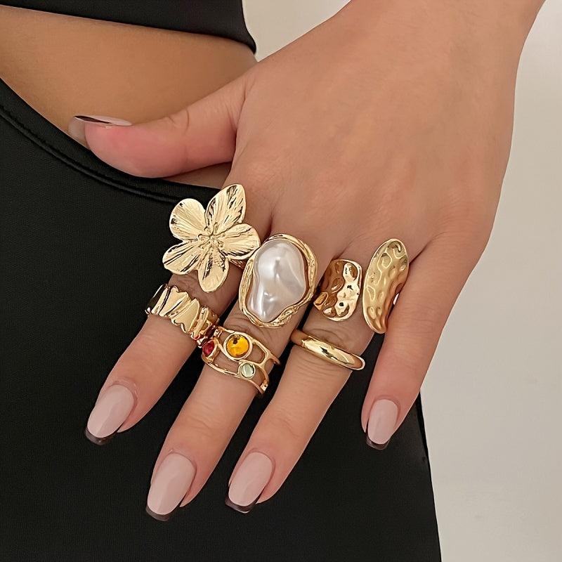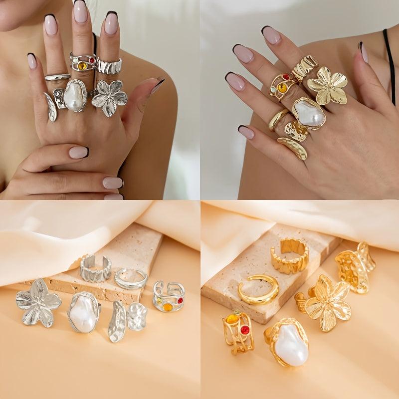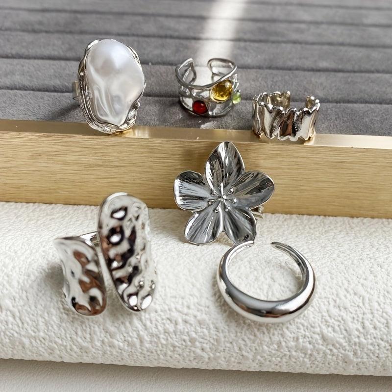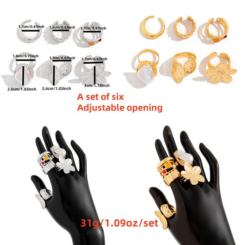 This set includes 6 adjustable open rings that are perfect for a bohemian look. Wear them individually or stack them together for a trendy style.