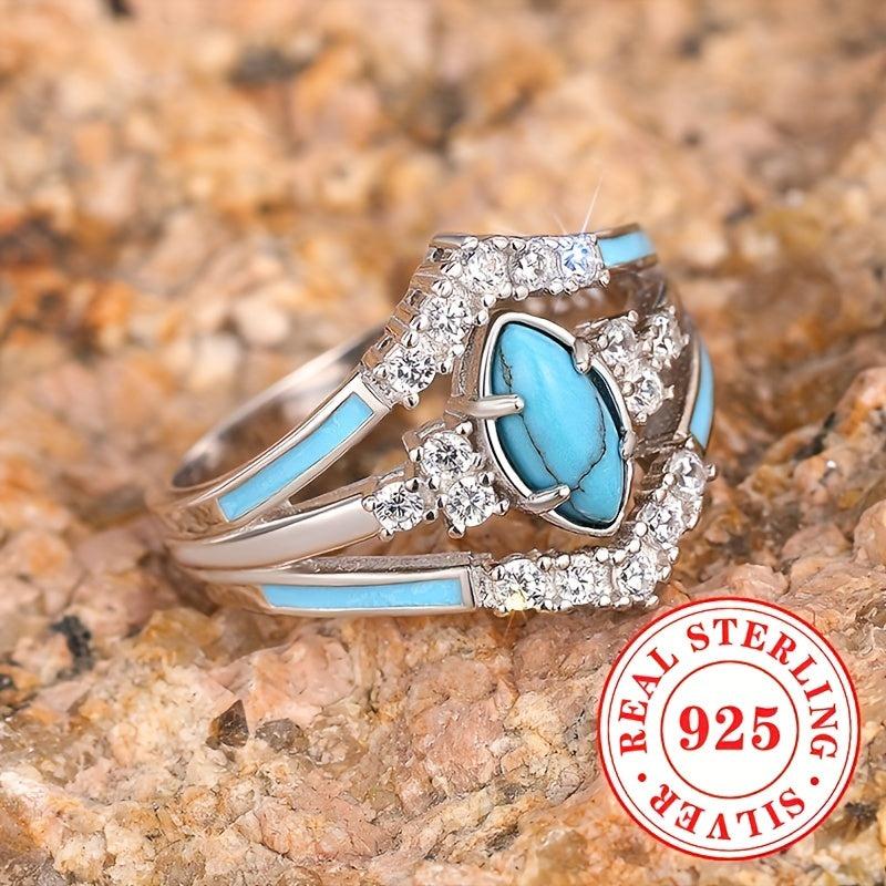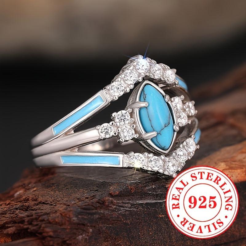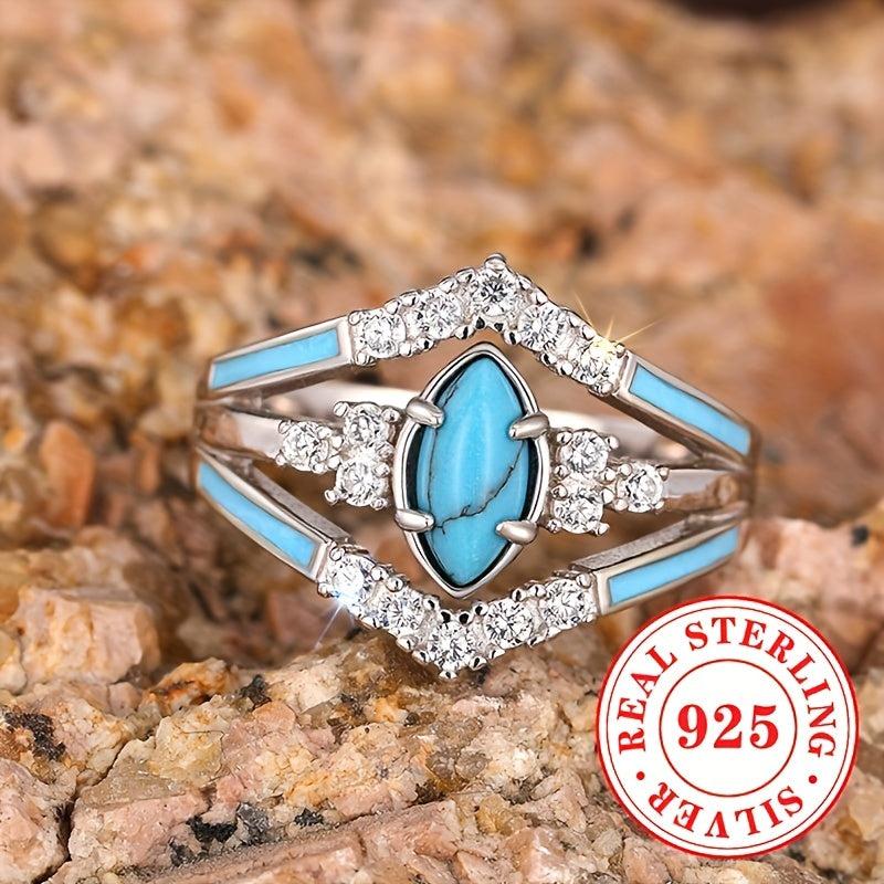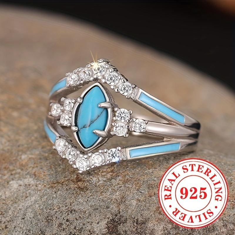 Elevate your style with this bohemian vintage ring featuring S925 pure silvery enamel, zirconia artificial gemstone, and rhodium plating. Ideal for daily wear.