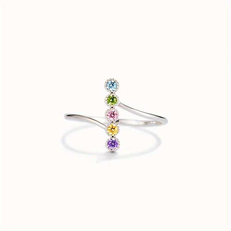 This stunning S925 silver ring features round synthetic zirconia stones in a vibrant and colorful design, making it the perfect Christmas or Valentine's Day gift for your wife or girlfriend.