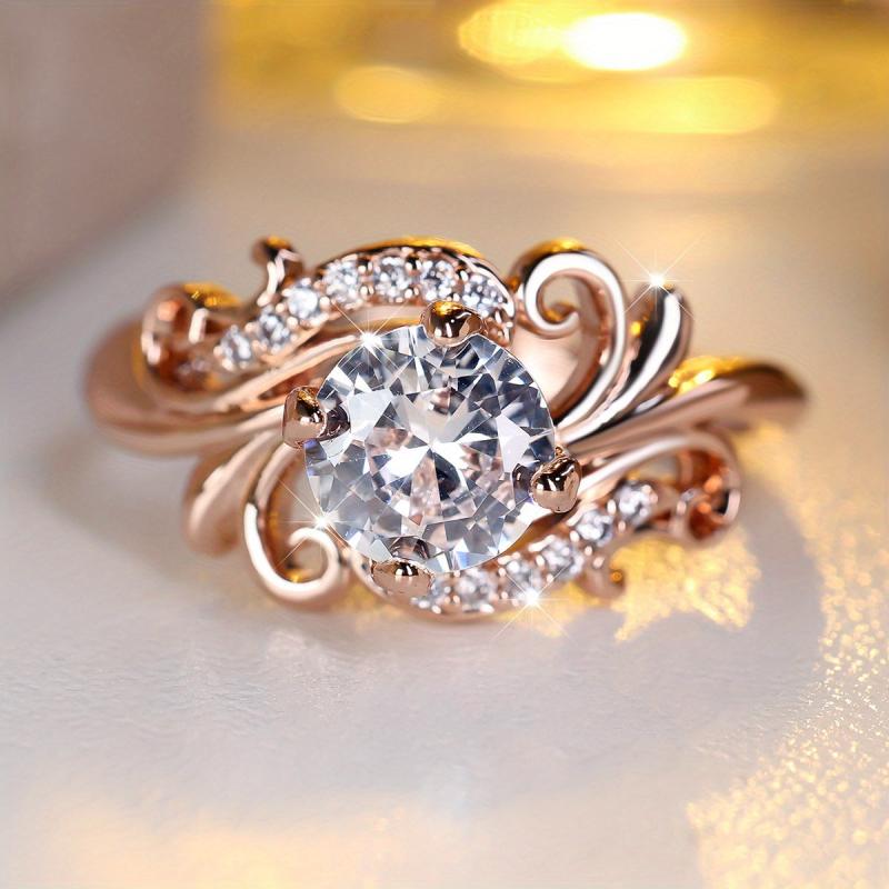 This stunning vintage-inspired copper ring features sparkling cubic zirconia stones. Perfect for parties, banquets, and weddings.