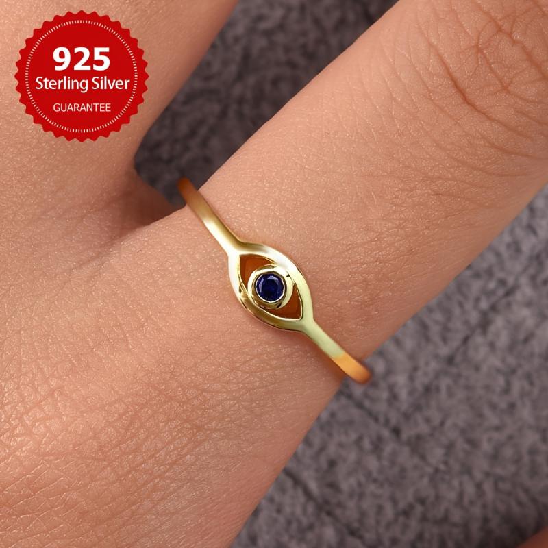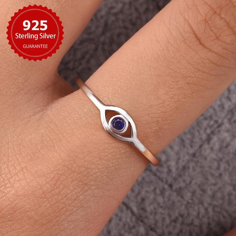 This unique Devil's Eye ring is made of 925 sterling silver, featuring a synthetic zirconia stone. It is perfect for both casual wear and parties. The ring weighs about 1.3-1.56g.