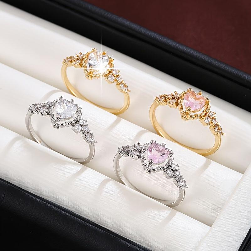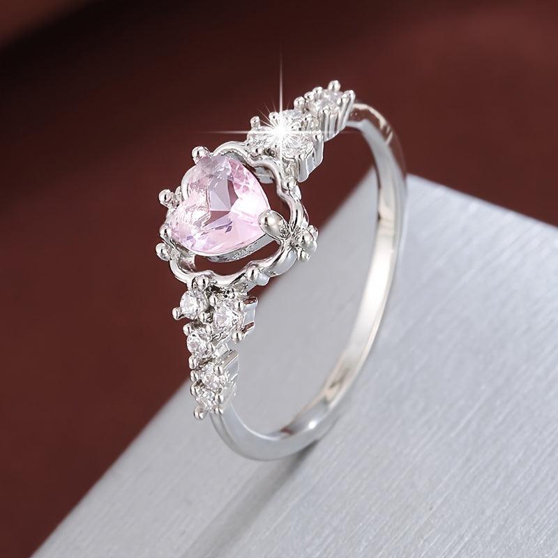 This lovely ring features a floral heart design with pink and yellow cubic zirconia stones, making it a perfect everyday jewelry gift for women on Valentine's, anniversary, or birthday.