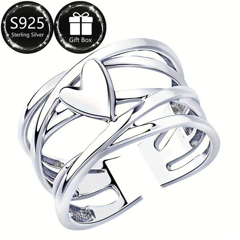 Add a touch of elegance to your look with this unique heart-shaped ring made of 925 sterling silver. It is silver plated, nickel-free, and hypoallergenic, making it suitable for daily wear or special occasions.