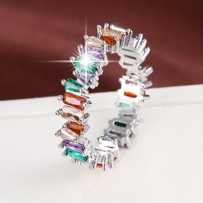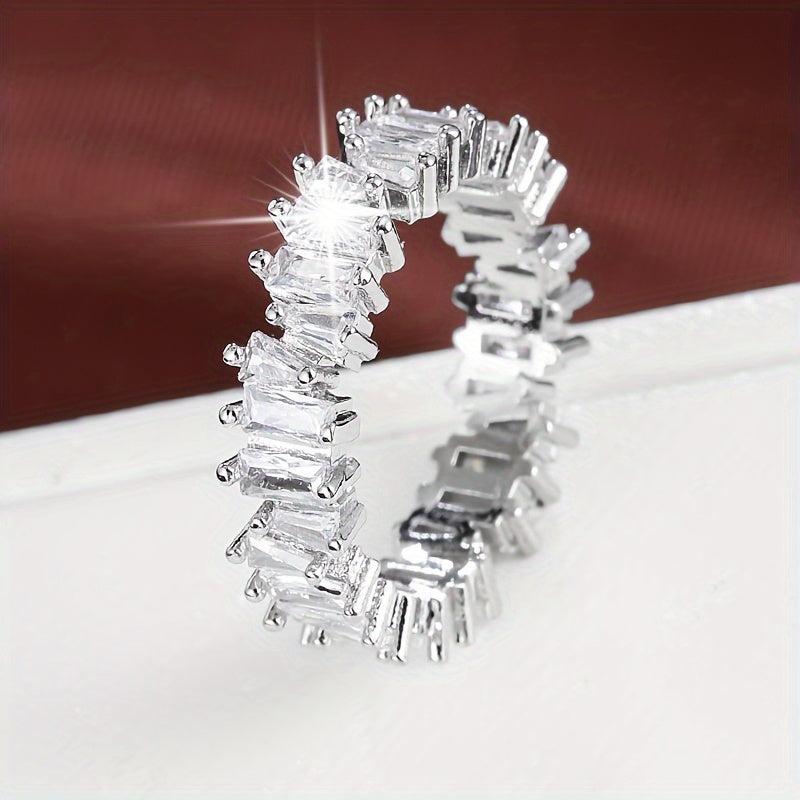 Add a touch of sophistication to your outfit with this stunning geometric zirconia ring. Made of premium silver, this ring is perfect for any occasion.