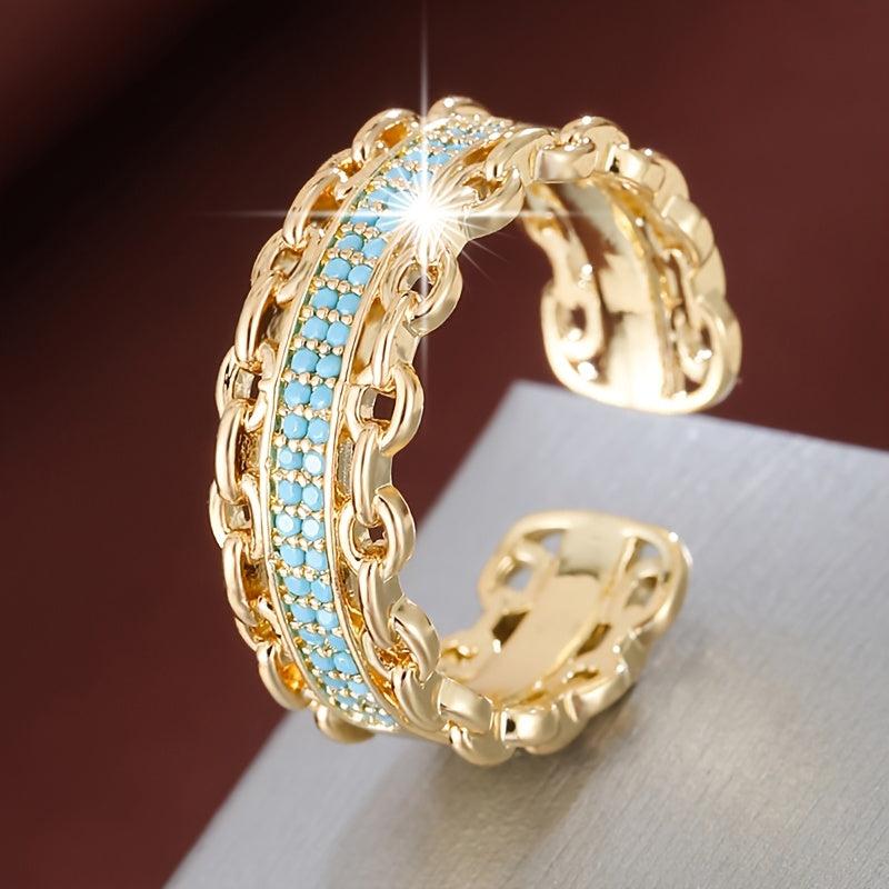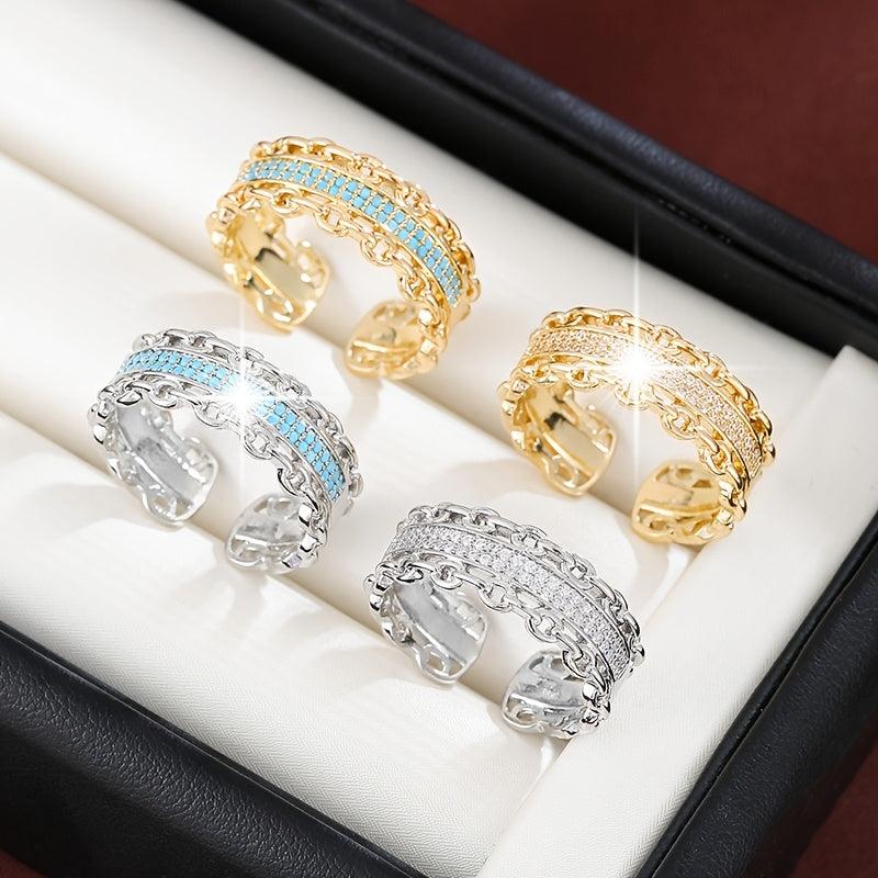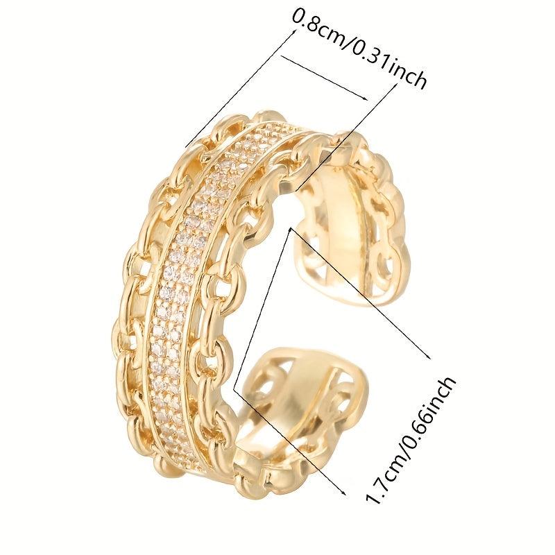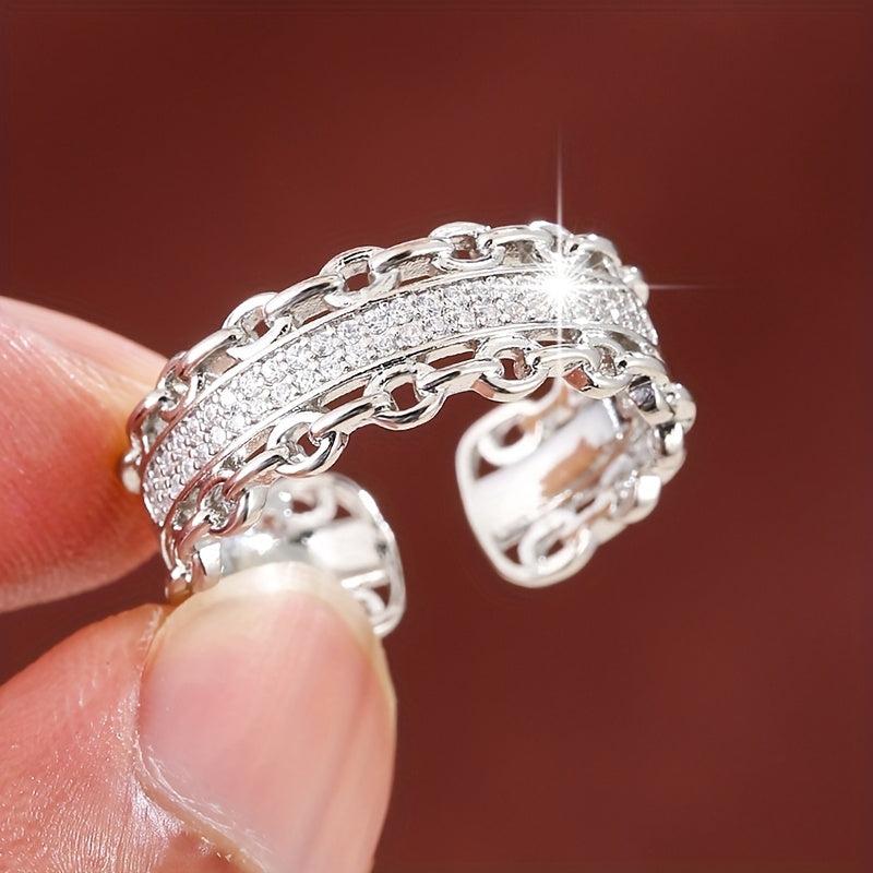 Elevate your everyday style with this stunning geometric chain link ring featuring sparkling cubic zirconia accents. Perfect for adding a touch of elegance to any outfit.