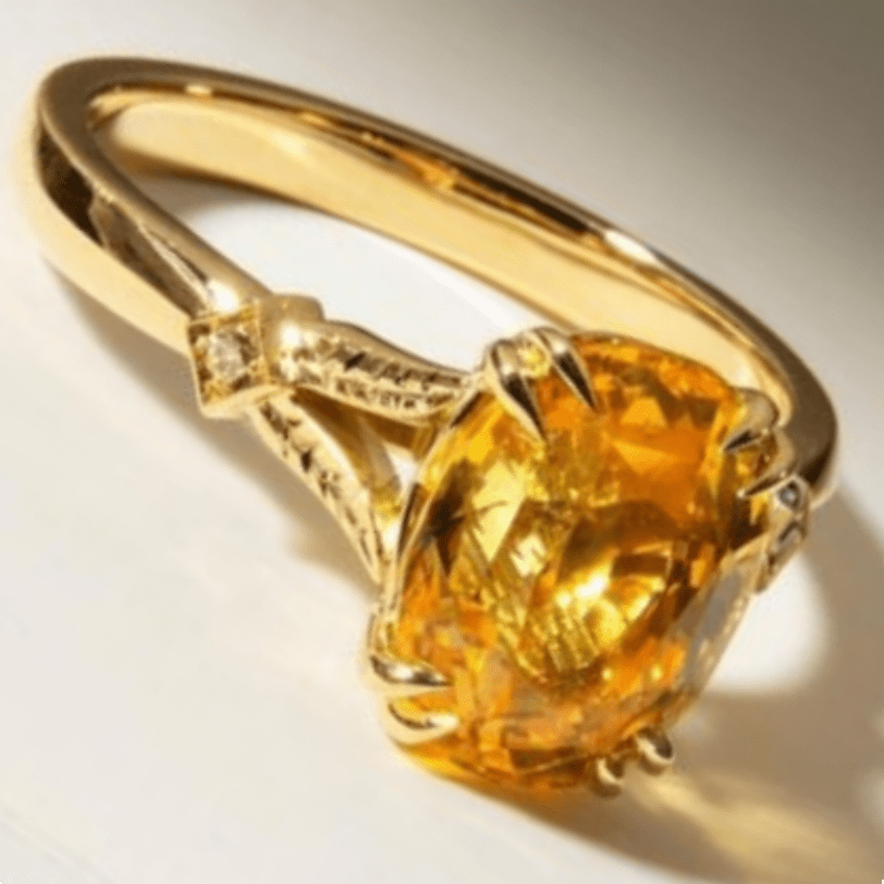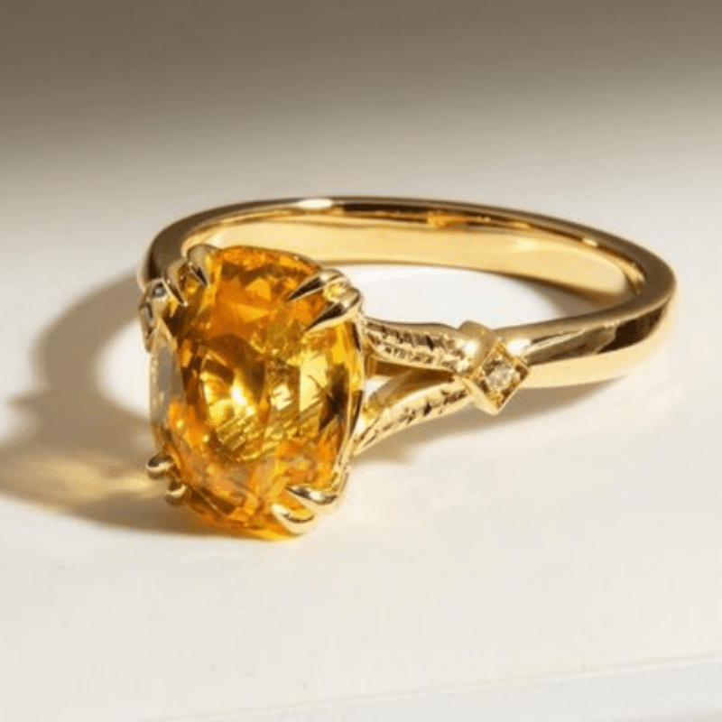 This stunning ring features a sparkling yellow cubic zirconia set in an intricate golden tone design. Ideal for engagements, weddings, cocktail parties, or as a special gift for her.