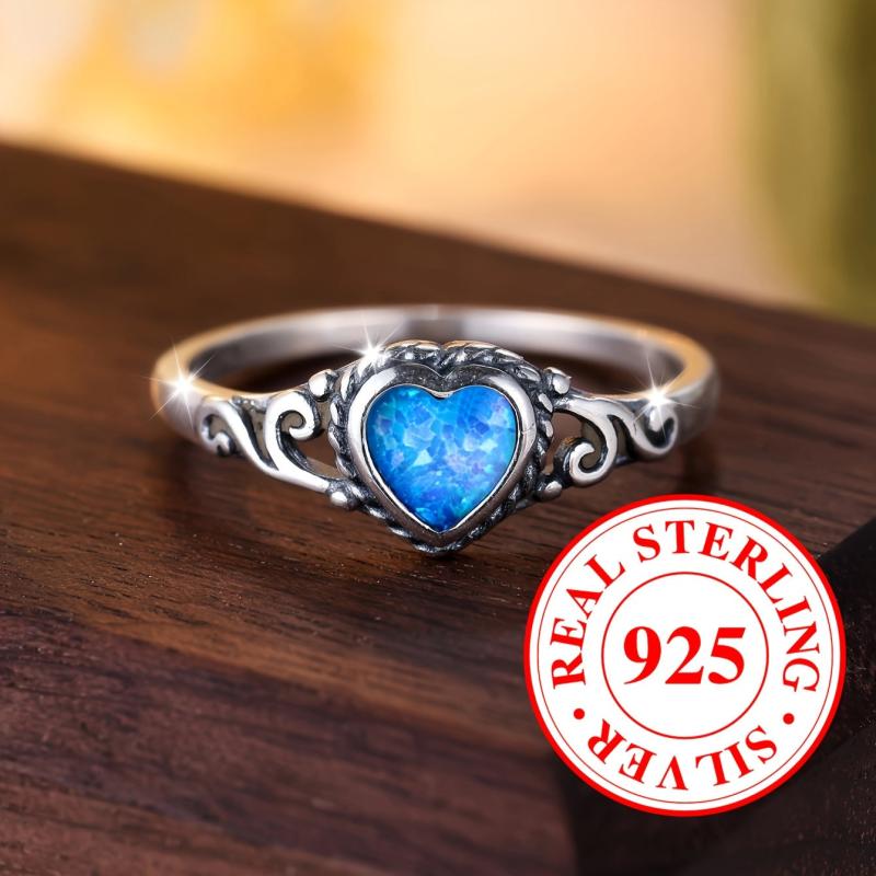 This beautiful ring features a heart swirl design with a synthetic opal stone. Made of high-quality sterling silver, this ring is perfect for adding a touch of boho style to your look. Ideal as a promise ring or friendship ring.