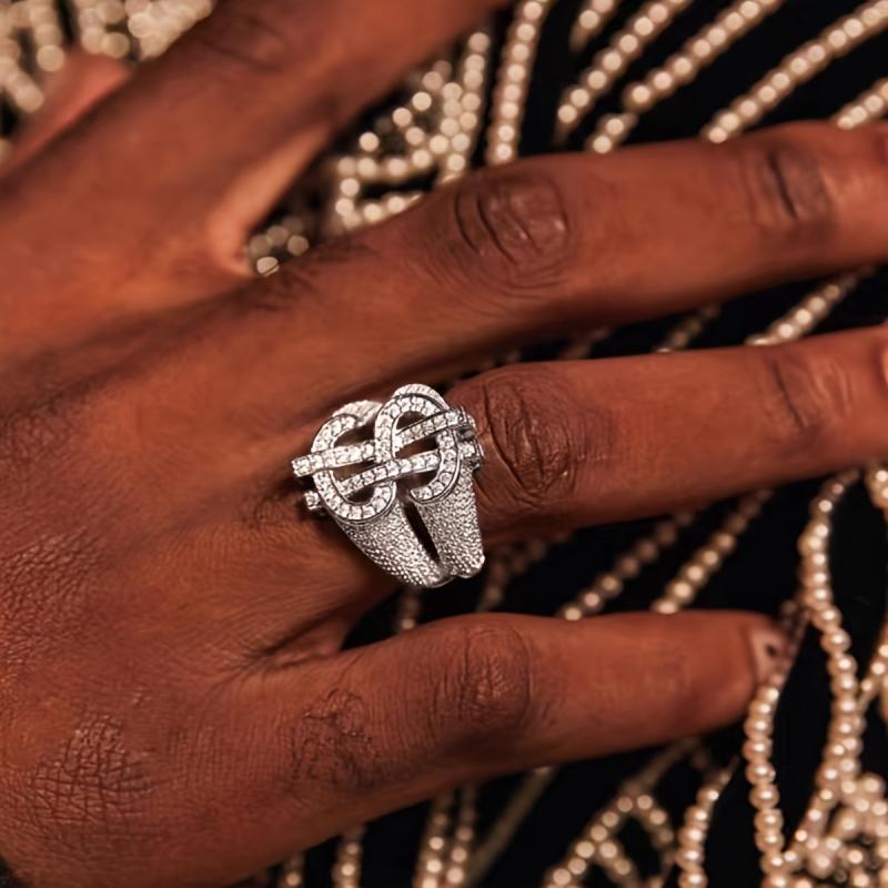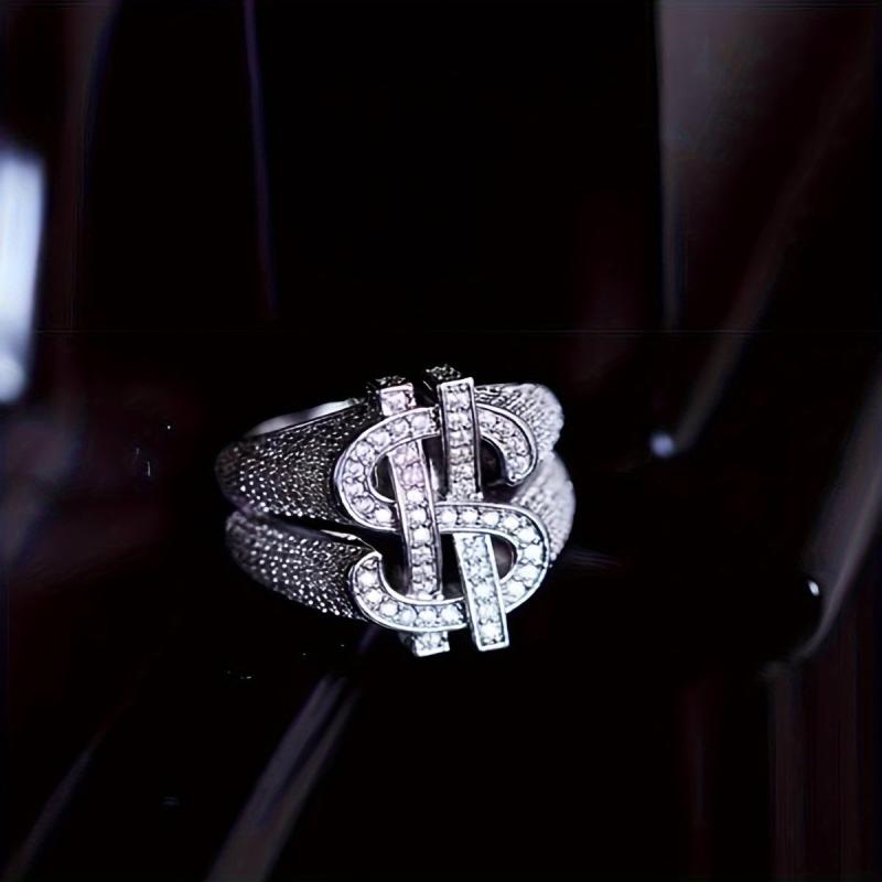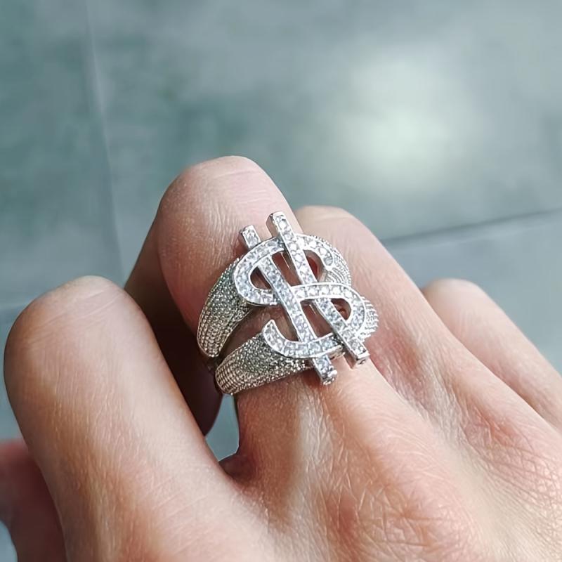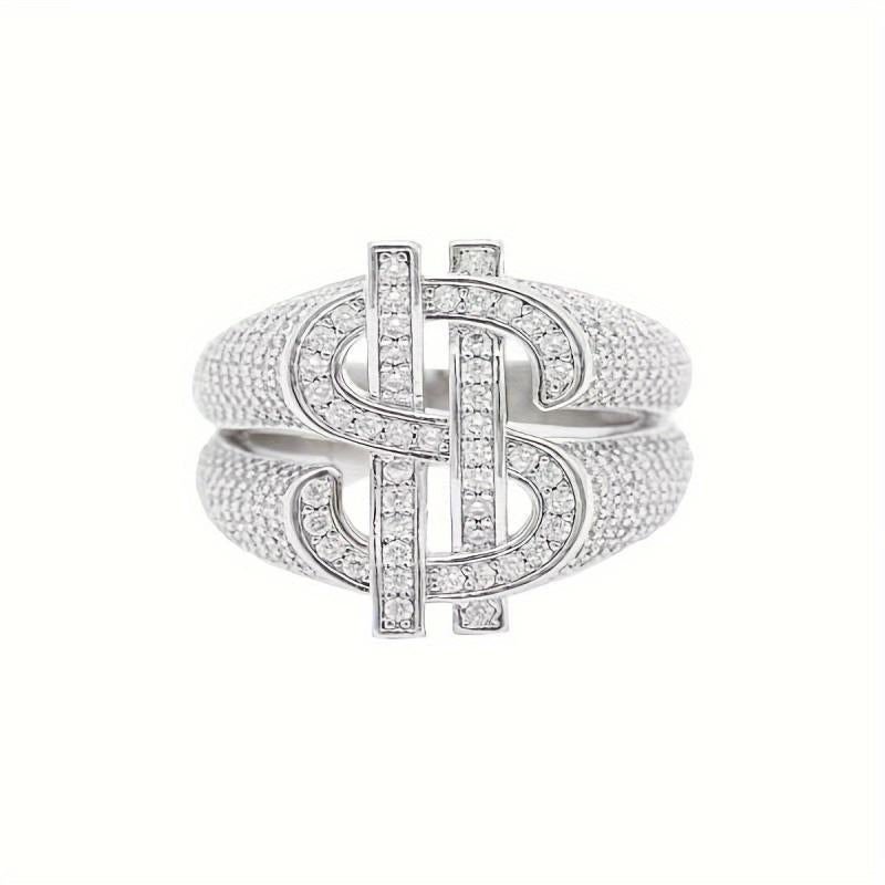 Hip Hop Style Men's Dollar Sign Ring with Rhinestone Accents