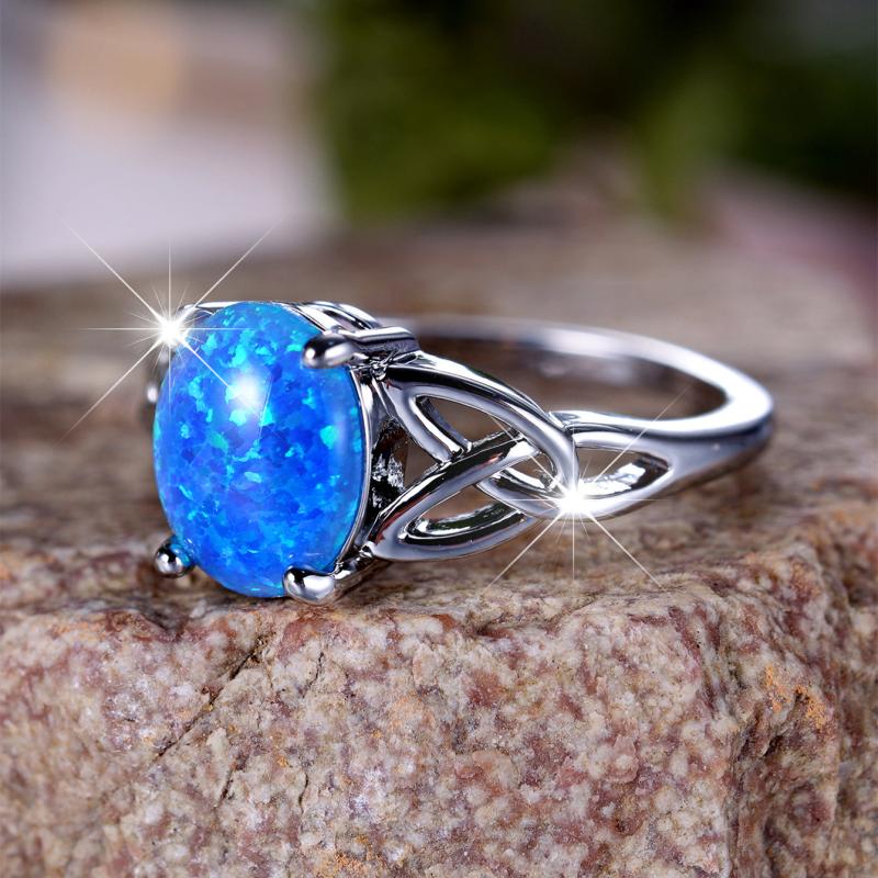 This beautiful opal promise ring features a Celtic band design, making it a perfect gift for your loved one. The inlaid opal adds a touch of elegance and charm.