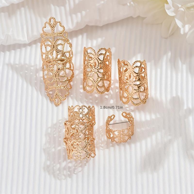 Enhance your style with this set of irregular stacking hollow rings. Perfect for adding a touch of chic to any outfit.