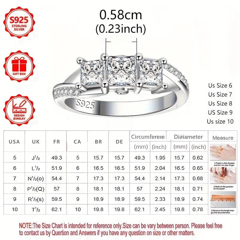 This exquisite statement ring features a princess cut synthetic zirconia set in high-quality 925 silver. It's the perfect gift for proposals, anniversaries, or to show your girlfriend how much you care.