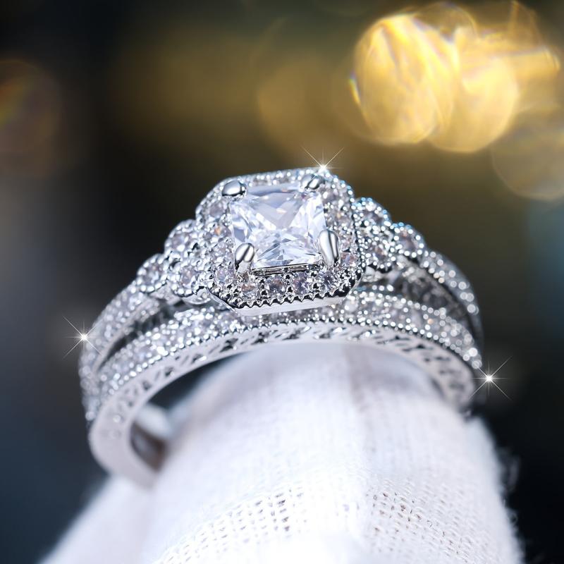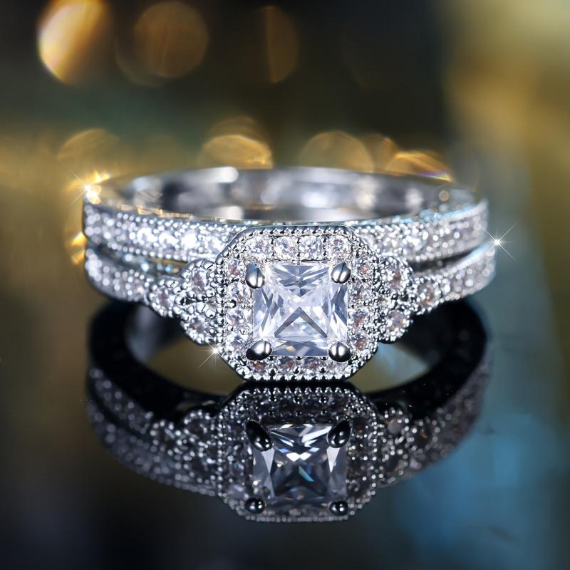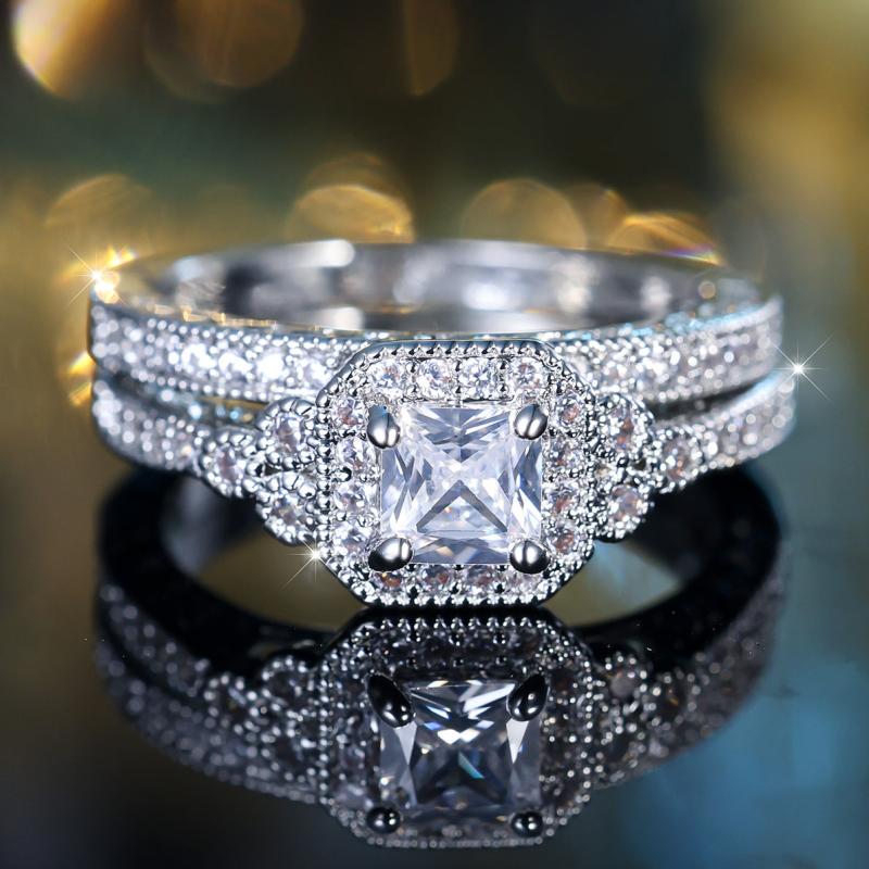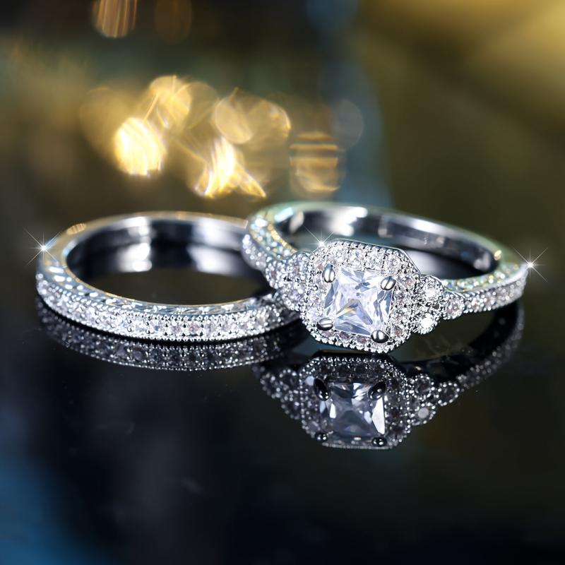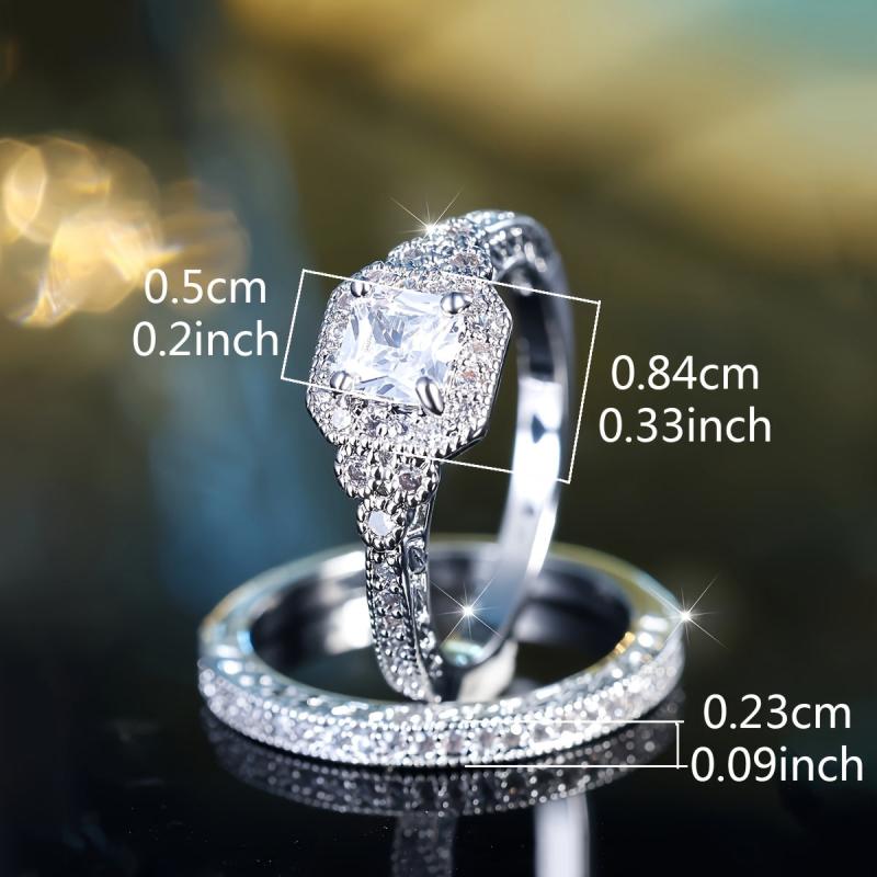 This 2pcs ring set features exquisite micro pave synthetic zirconia, perfect for weddings, bridesmaids, and couples. Show your love with these stunning rings.
