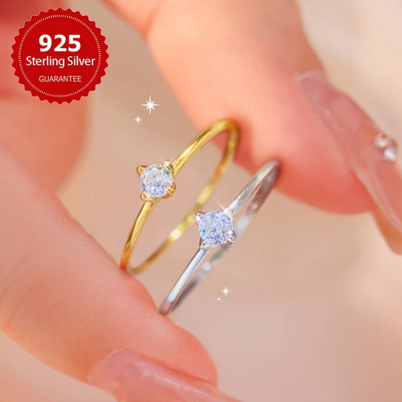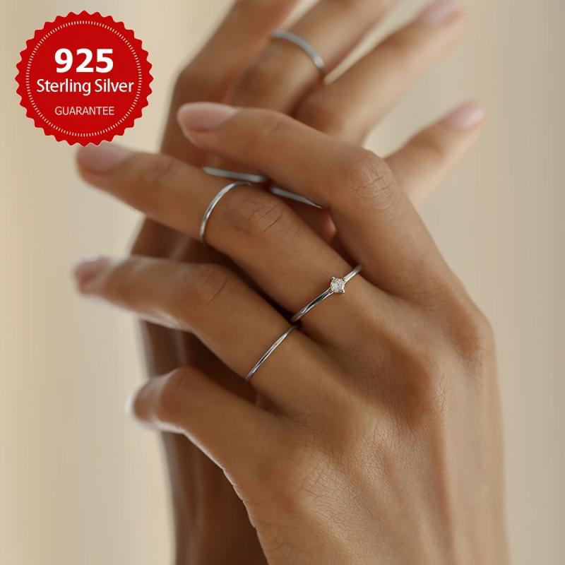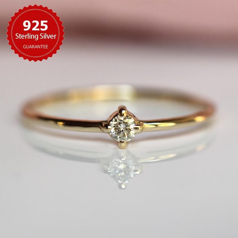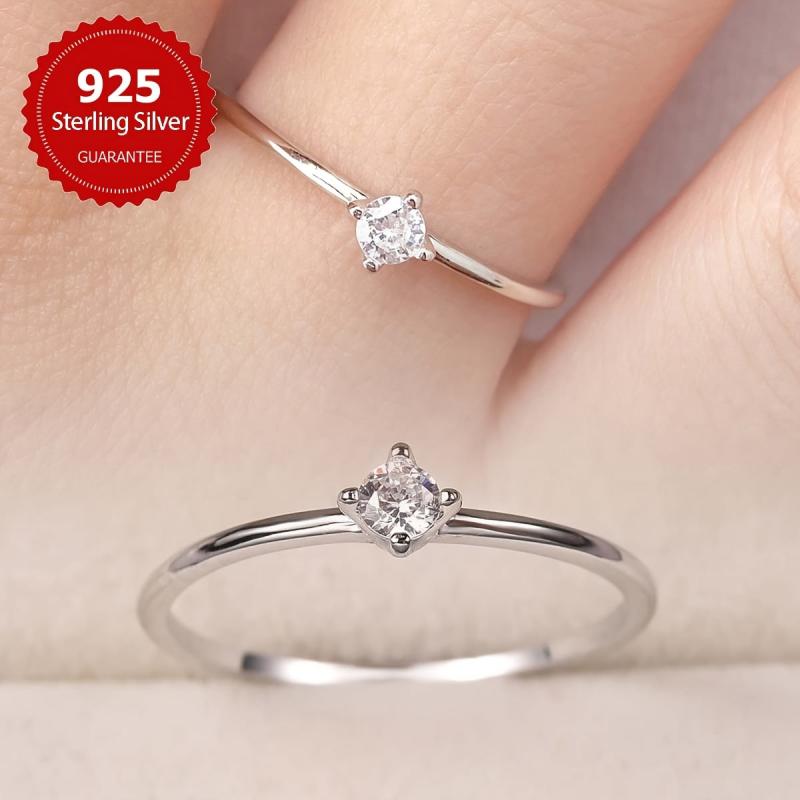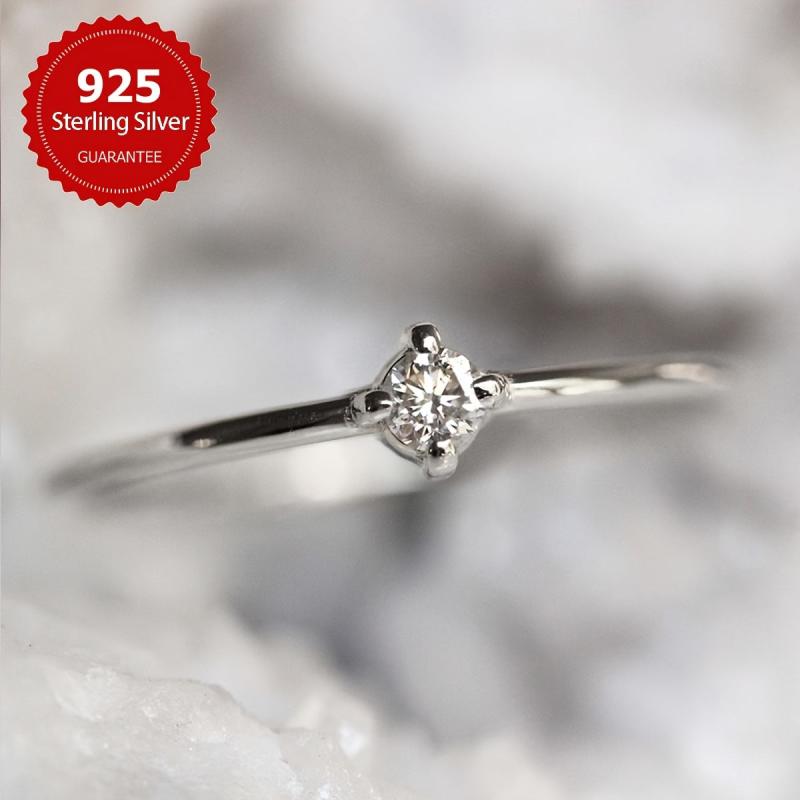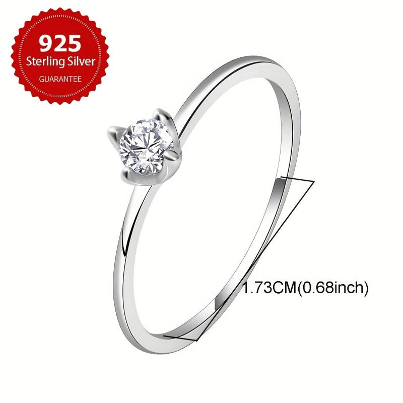 Elegant and simple silver ring with synthetic zirconia stone, perfect for weddings or everyday wear. Made of s925 sterling silver.