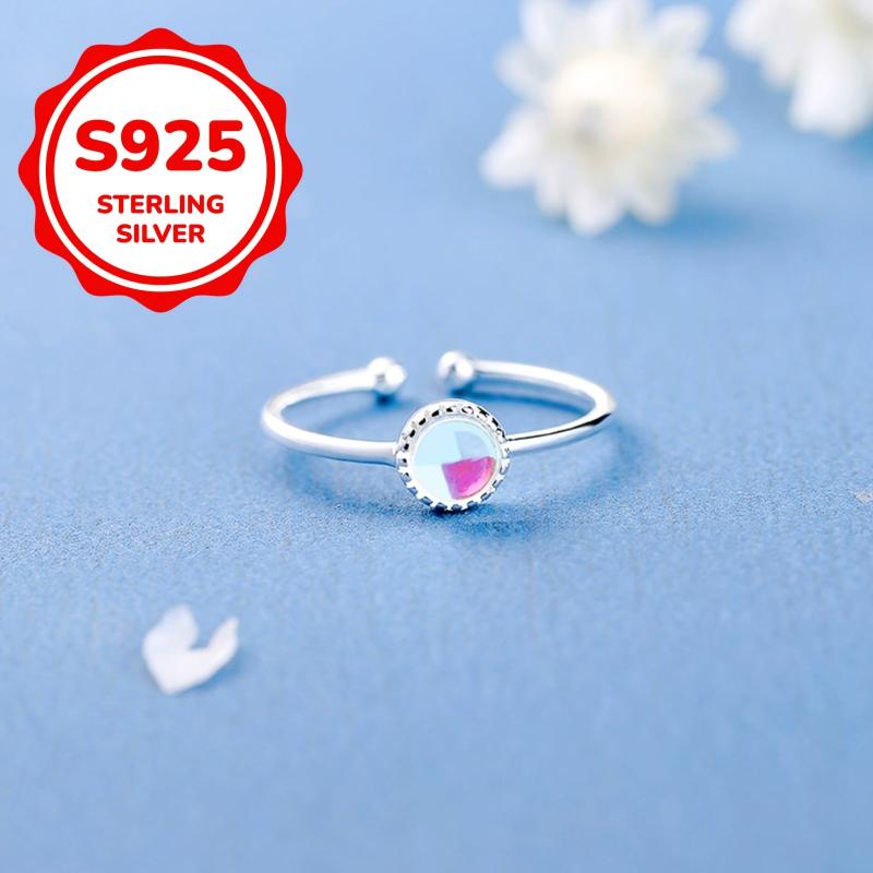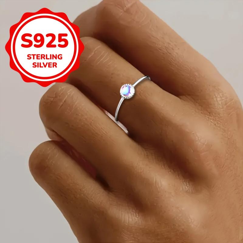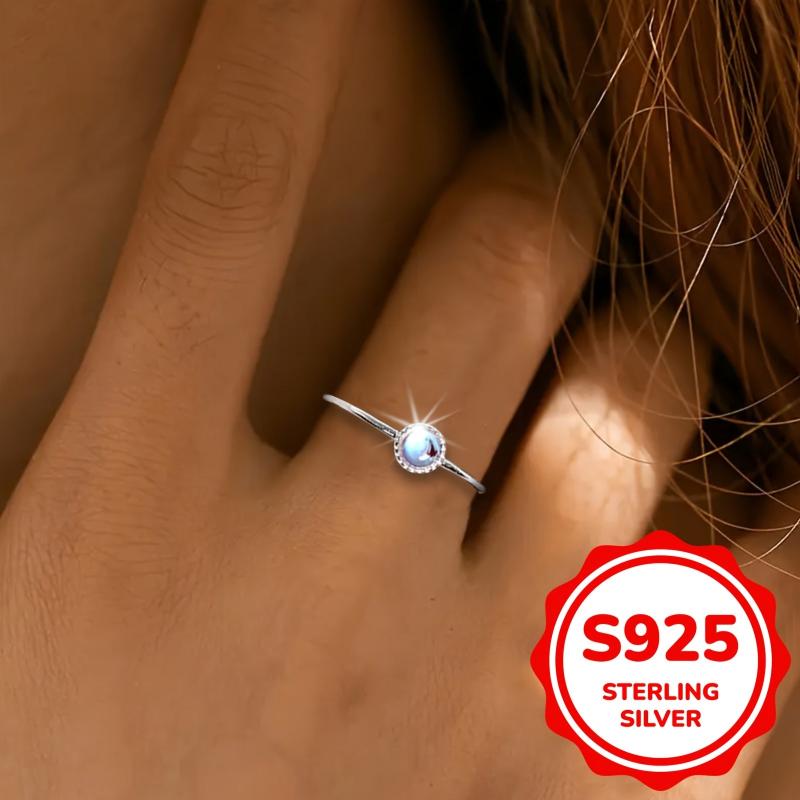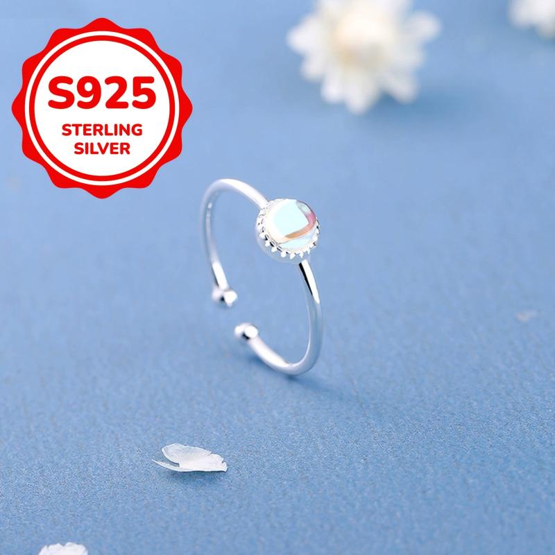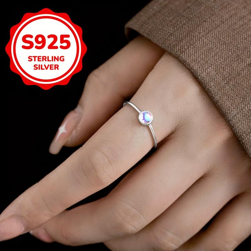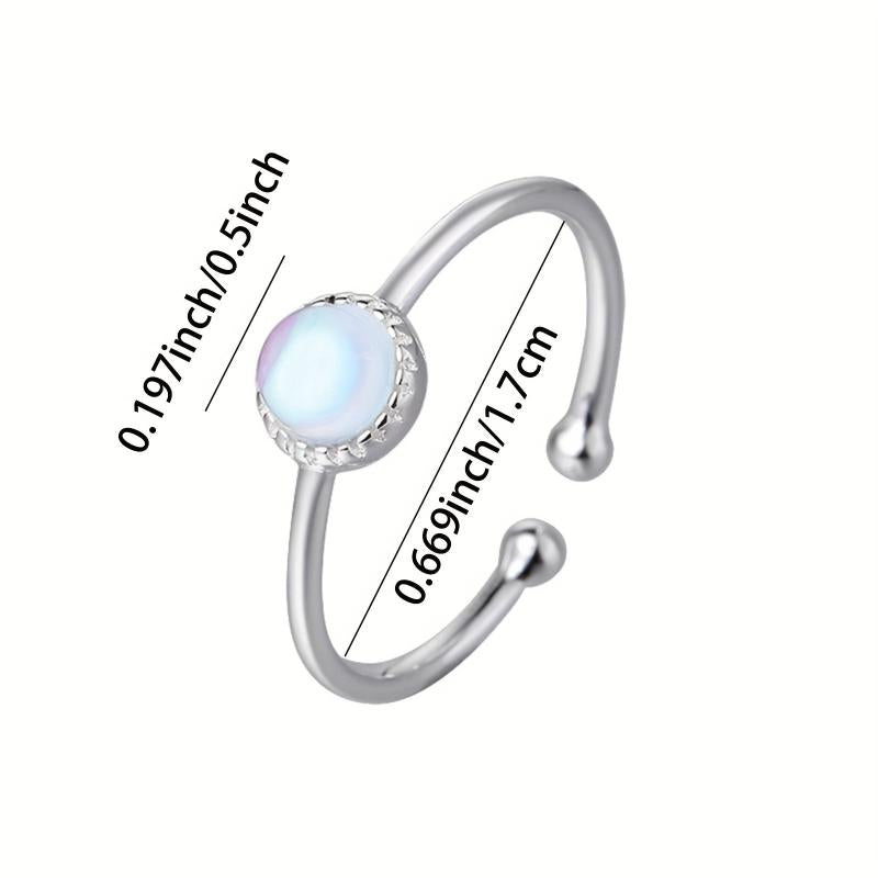This women's open ring features a beautiful moonstone inlay and is made of S925 silver. It is adjustable for a perfect fit and weighs only 0.8g, making it suitable for daily wear during the spring and summer seasons. The ring is low sensitivity, ideal for those with allergies or sensitive skin. A great gift for mothers.