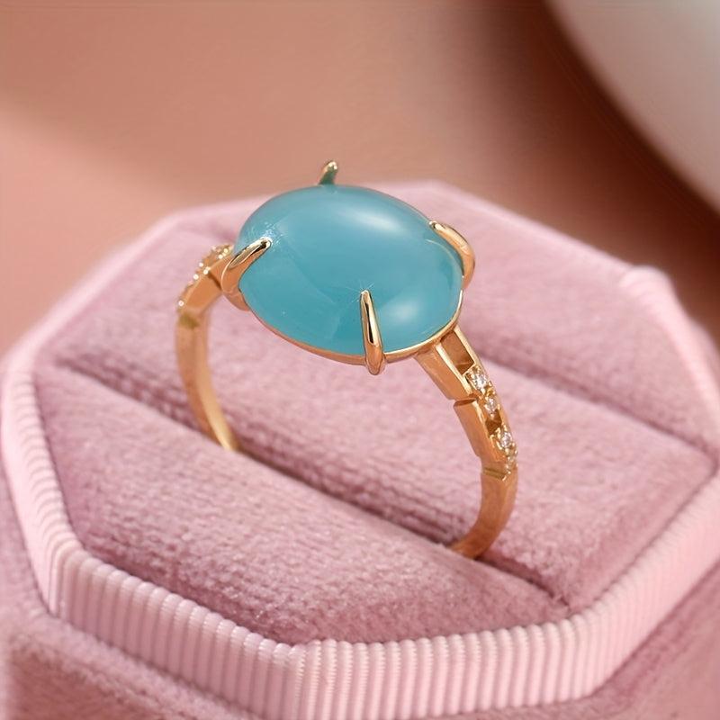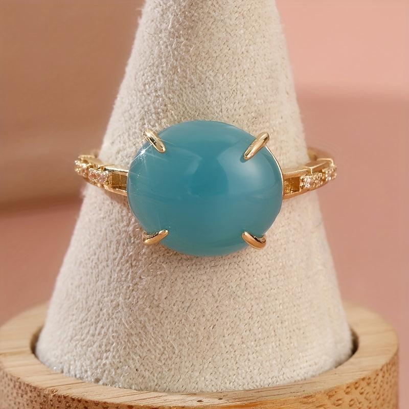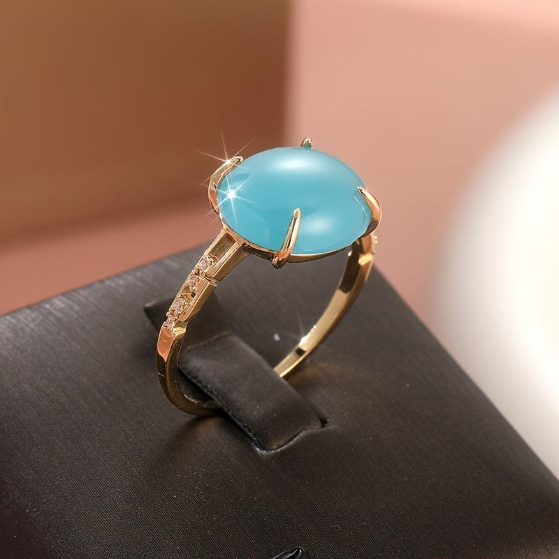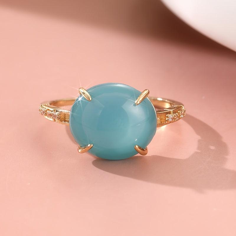 This delicate ring features a golden plated copper band with a shimmering moonstone centerpiece. Ideal for weddings, anniversaries, and special occasions.