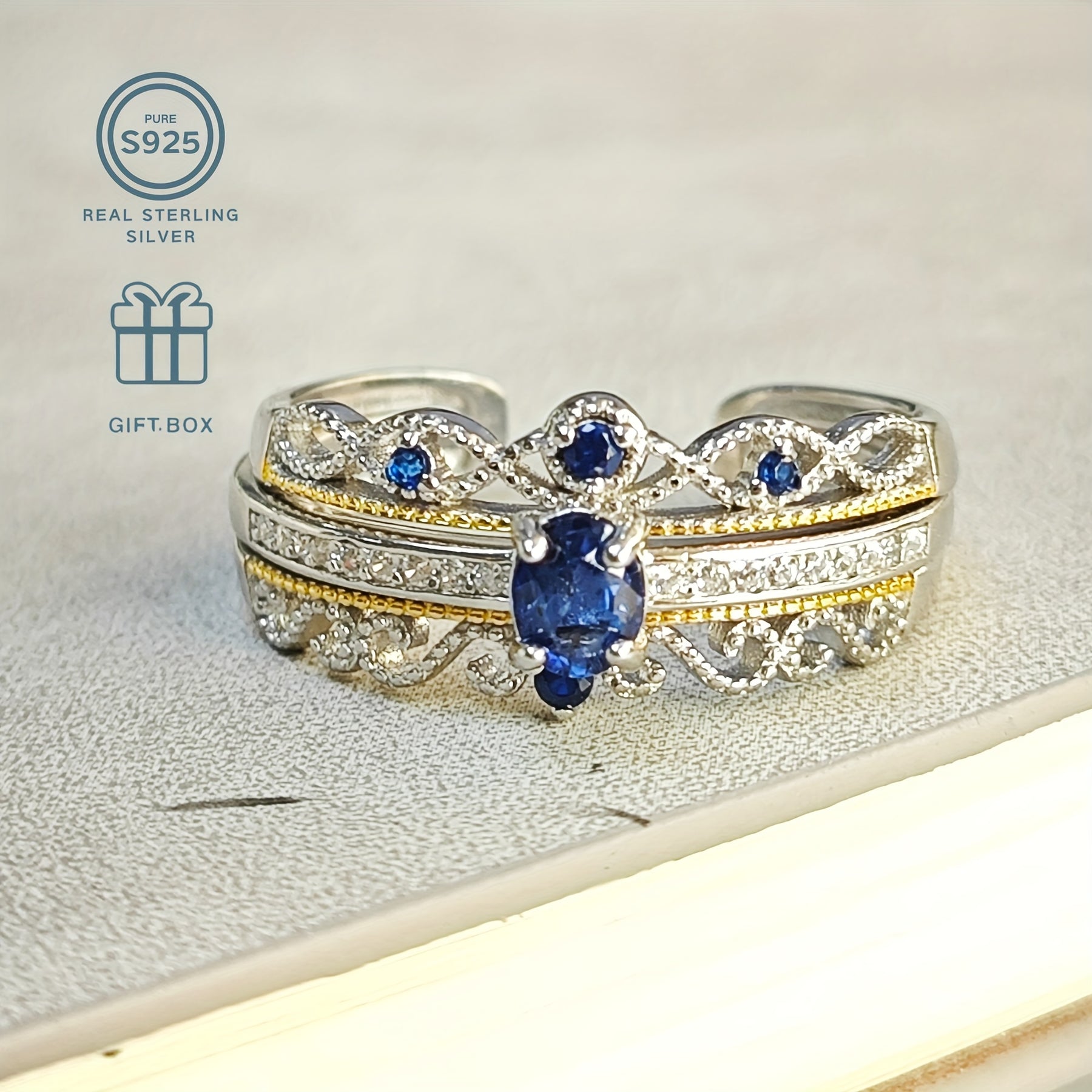Elegant and stylish, this handcrafted open ring features a unique pattern with natural stone inlay. Made of 925 sterling silver with a silvery plated finish, it is ideal for gifting on Valentine's Day.