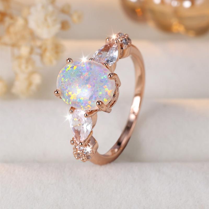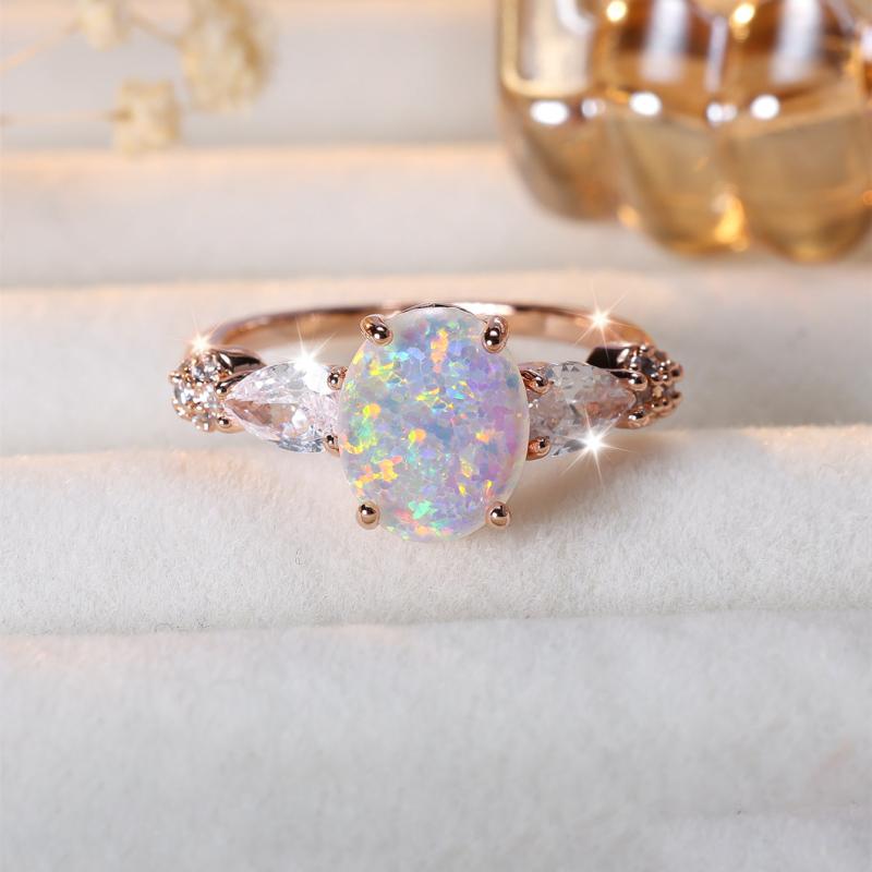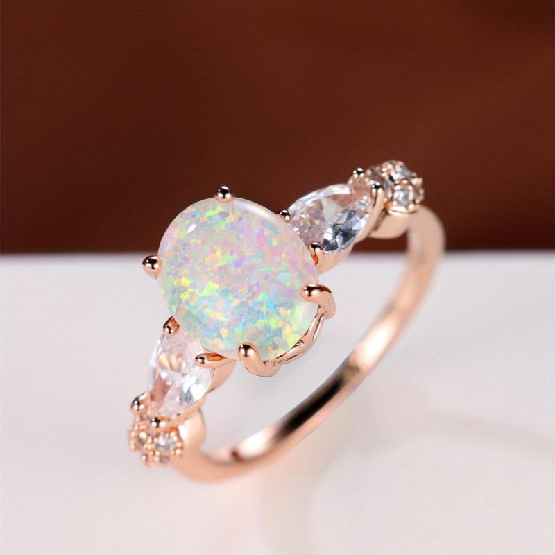 Shimmer with this stunning oval opal copper ring, perfect for weddings or as a gift for your wife or girlfriend. Make a statement with this sparkling beauty!