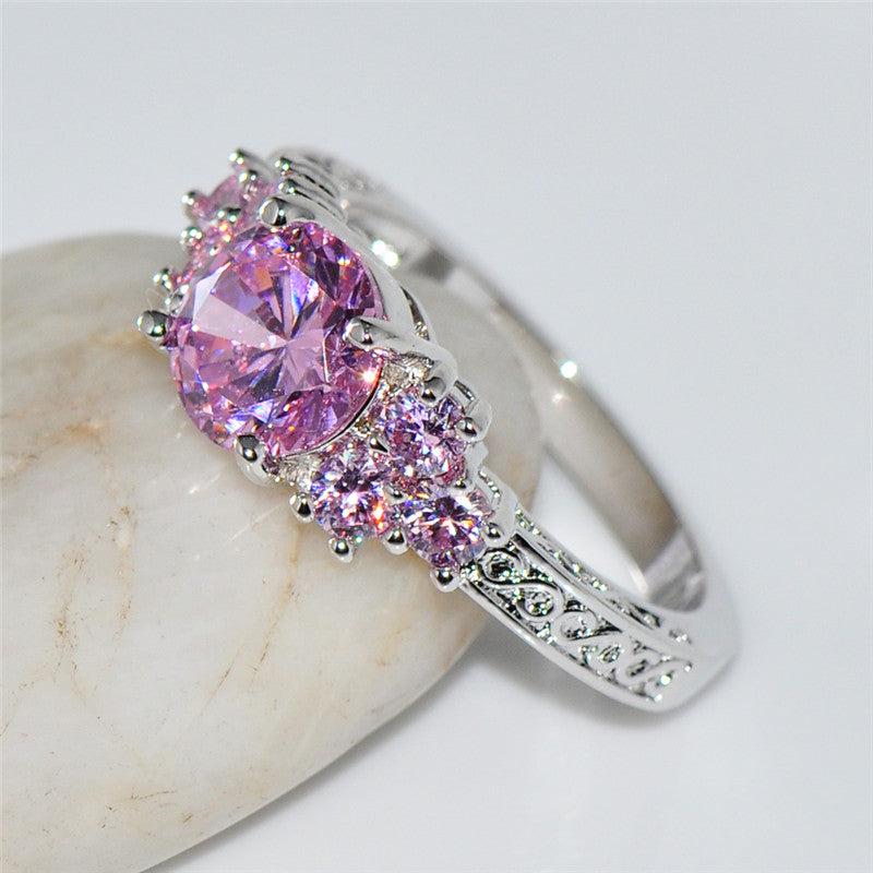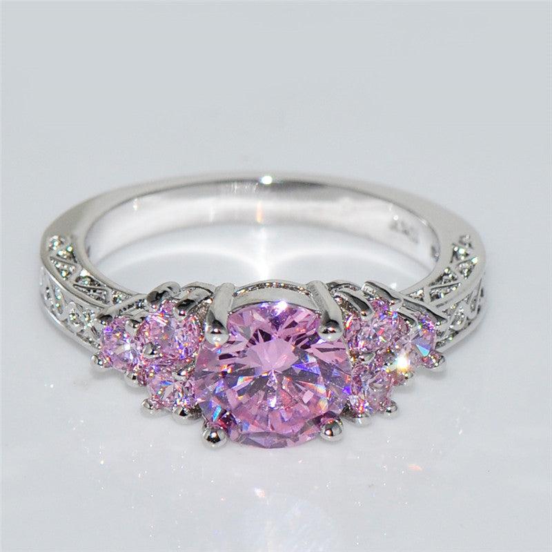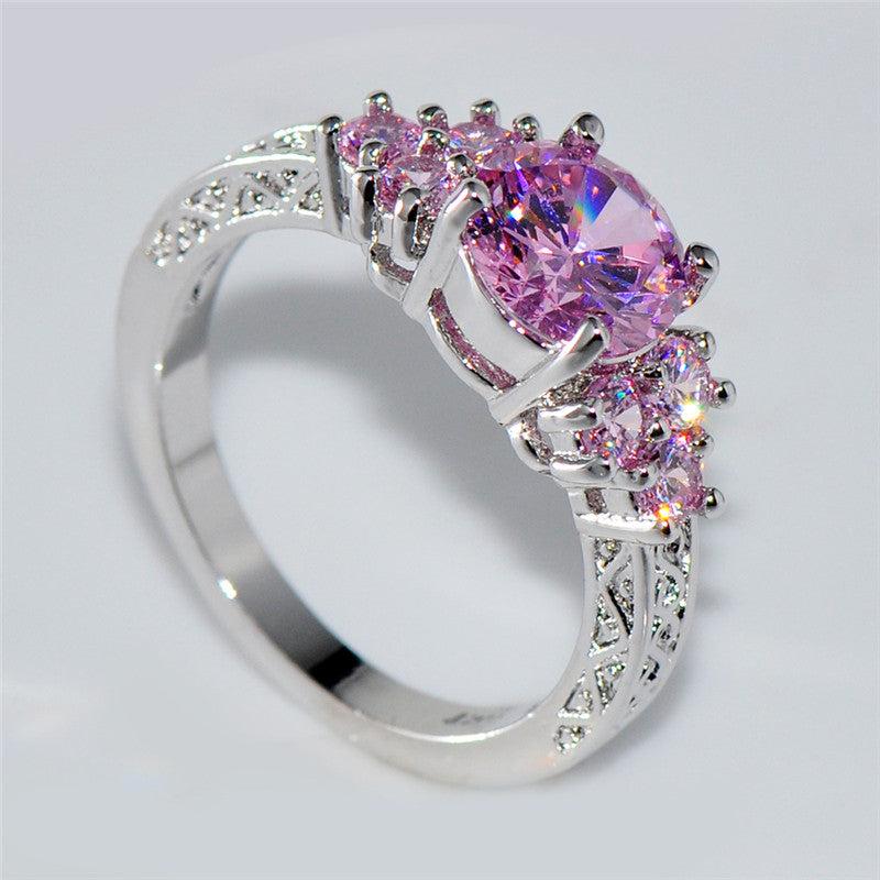 Pink CZ Wedding Bands Ring for Women Crystal Engagement Jewelry