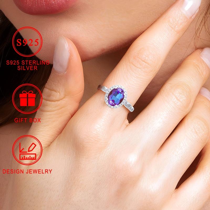Elegant S925 silver ring with shimmering purple zirconia, ideal for daily wear, parties, and festive occasions.