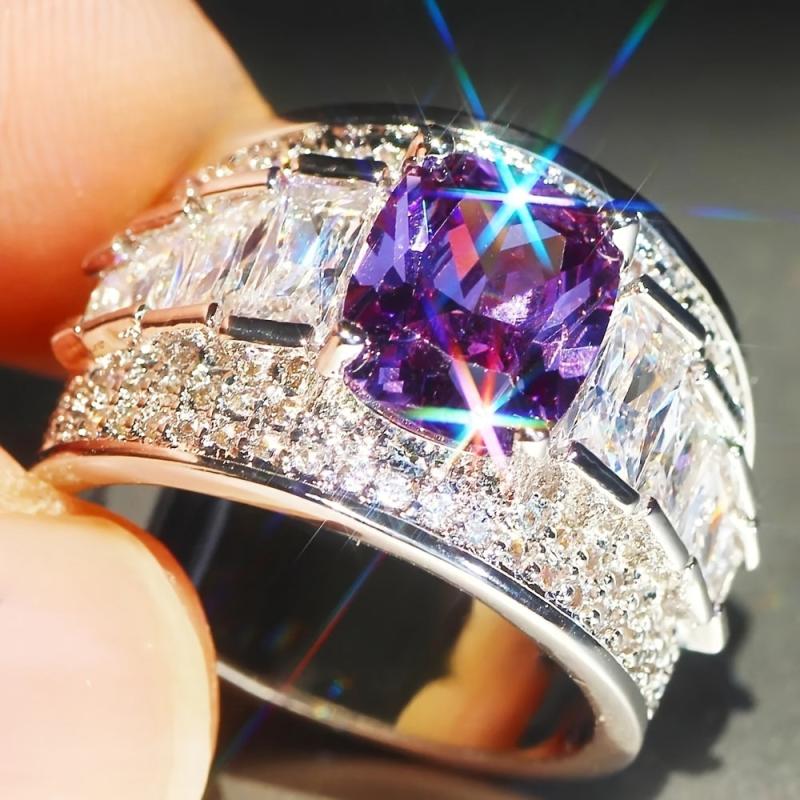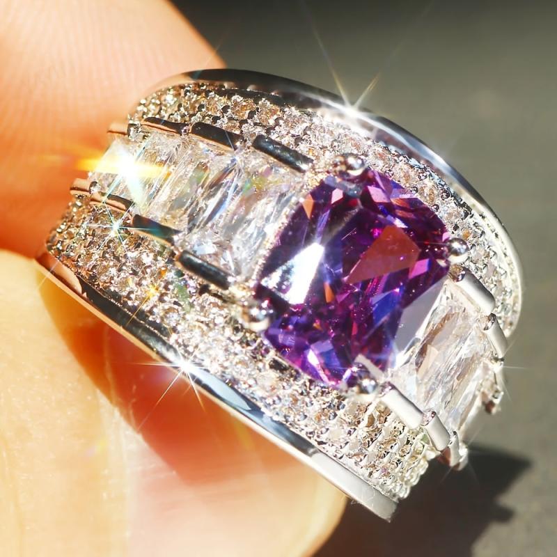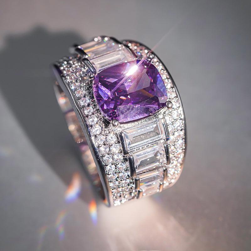 Add a pop of color to your look with this stunning purple synthetic zirconia ring. Perfect for any special occasion, from engagements to anniversaries.