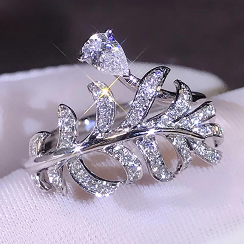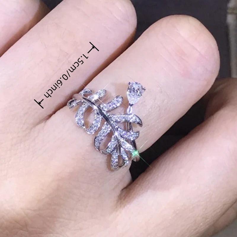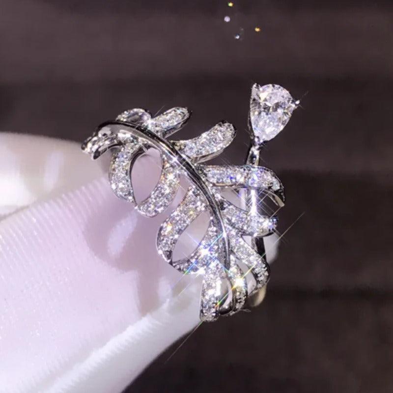 Elegant golden plated ring featuring a feather design with sparkling synthetic zirconia. Perfect for daily wear, parties, and holidays in April.