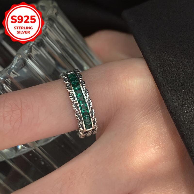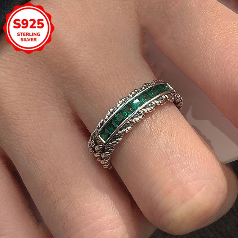 Elevate your casual attire with this low allergy S925 green twist ring. Perfect for a fashionable and minimalist look, this ring is a great BFF gift or accessory. Suitable for various occasions.