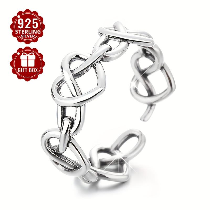 This pure S925 silver ring features a hollow heart design, fresh and sweet. Versatile for both men and women.