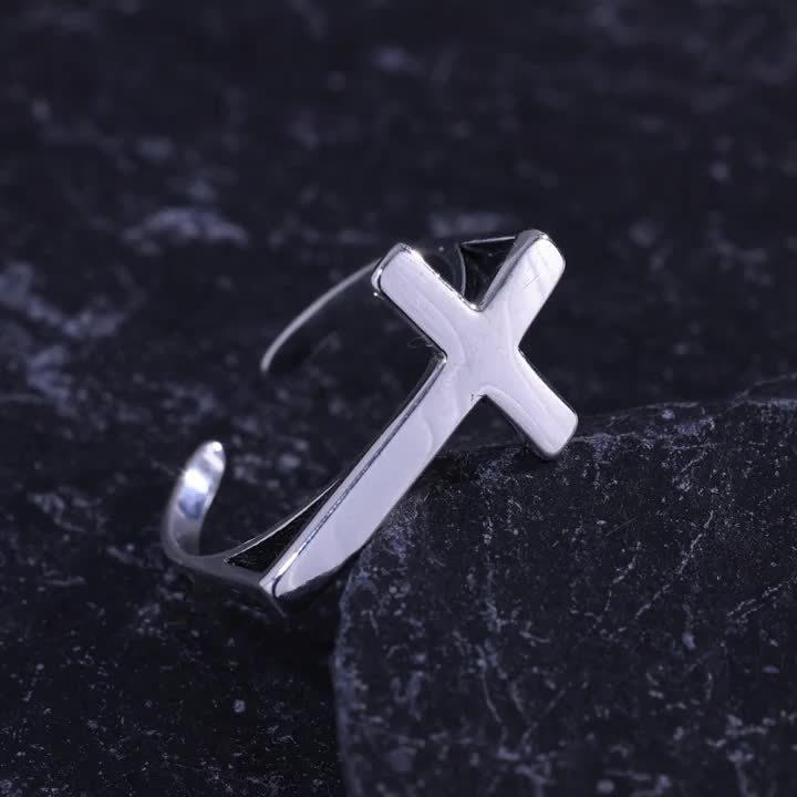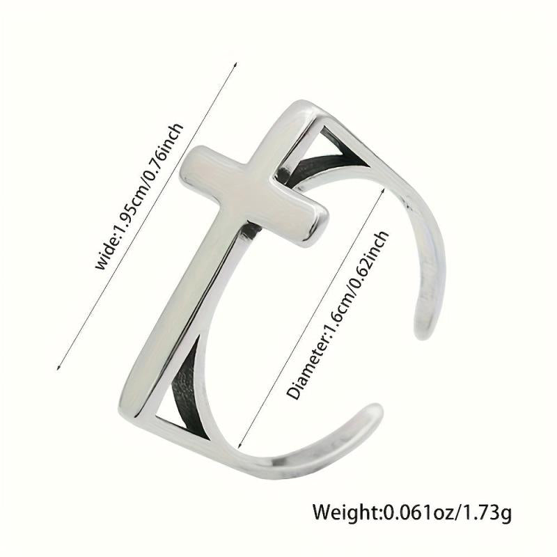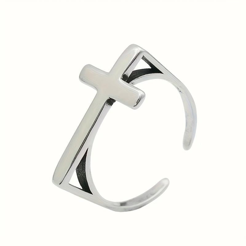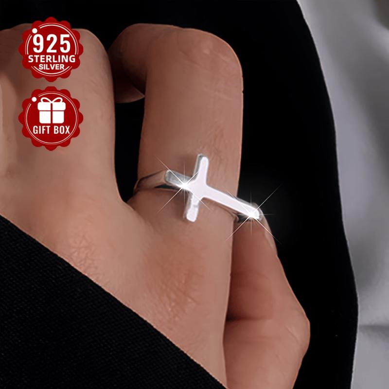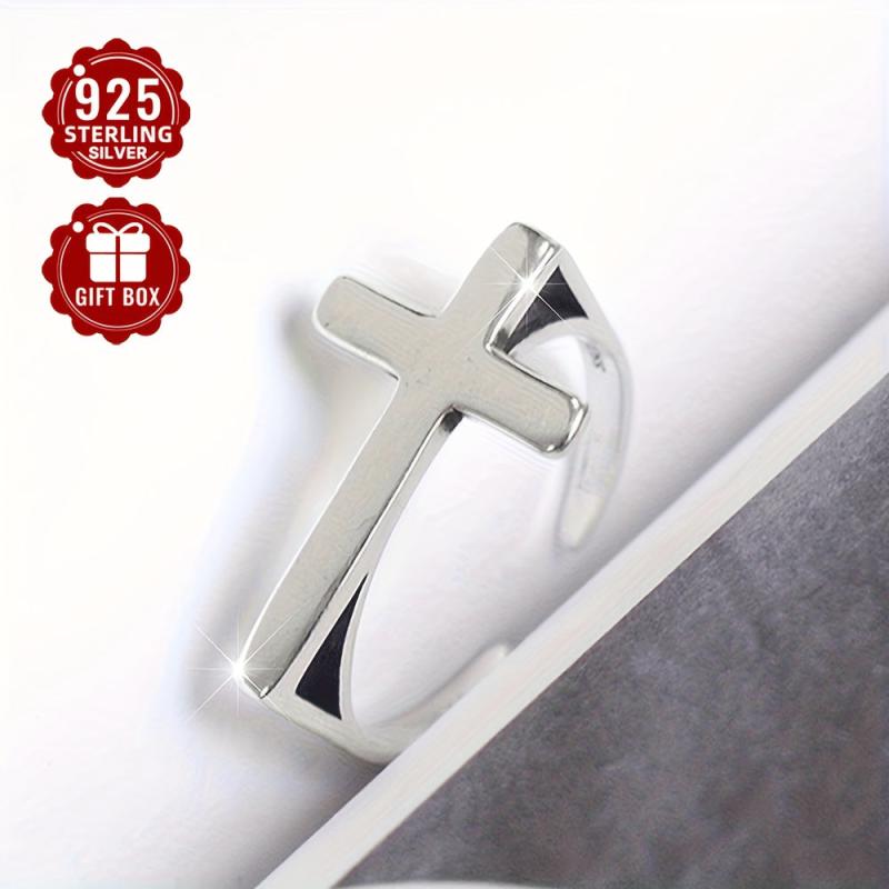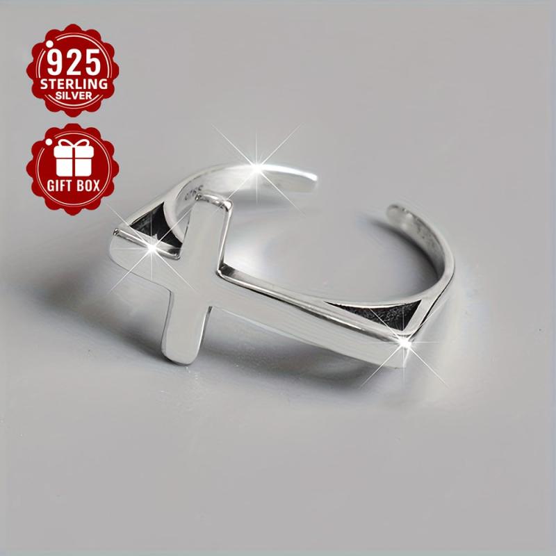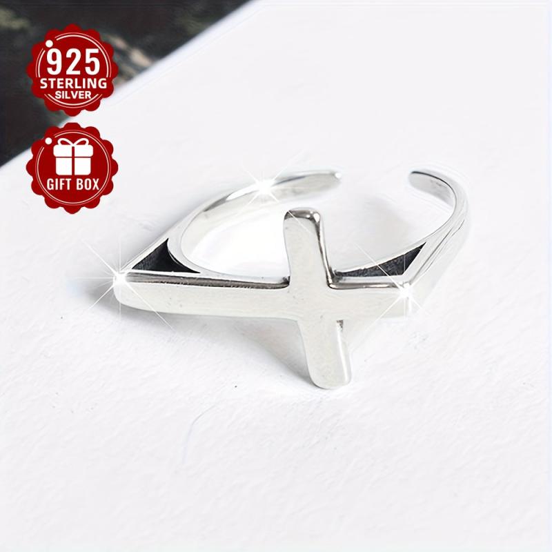 Add a touch of vintage charm to your outfit with this minimalist S925 pure silver open ring featuring a glossy cross design. Perfect for daily wear and vacation.