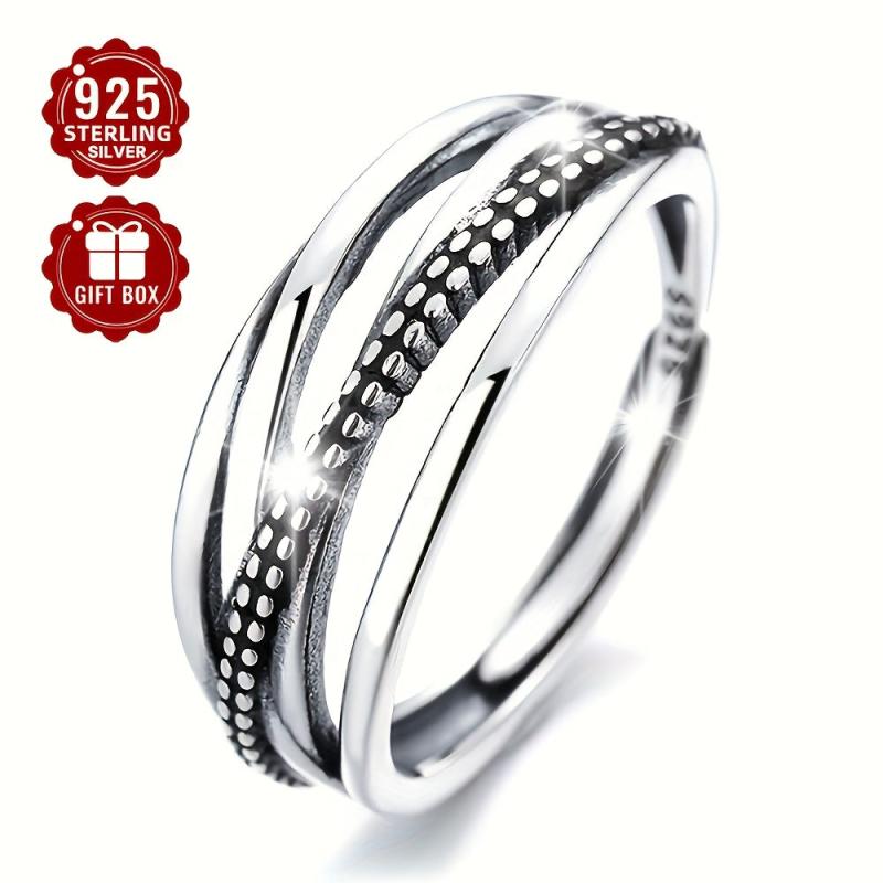 This women's ring is a versatile piece with a hip hop punk style. Made of S925 pure silver, it features a retro layer design and is adjustable to fit all sizes.