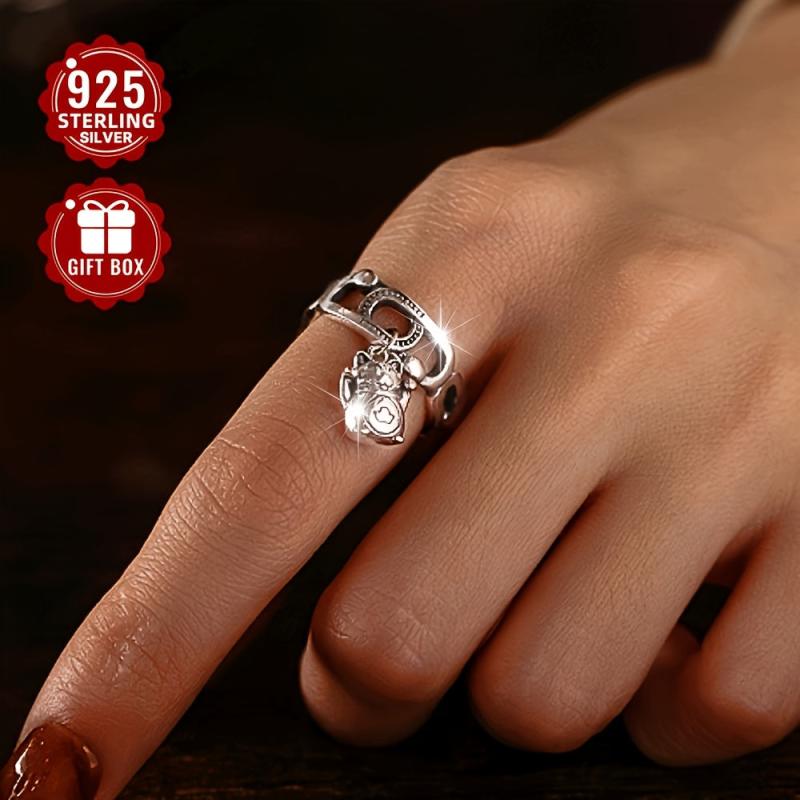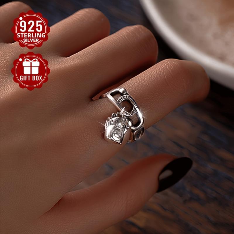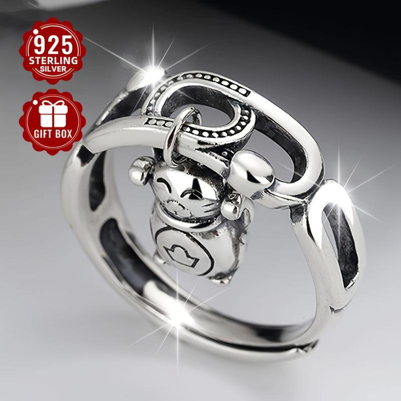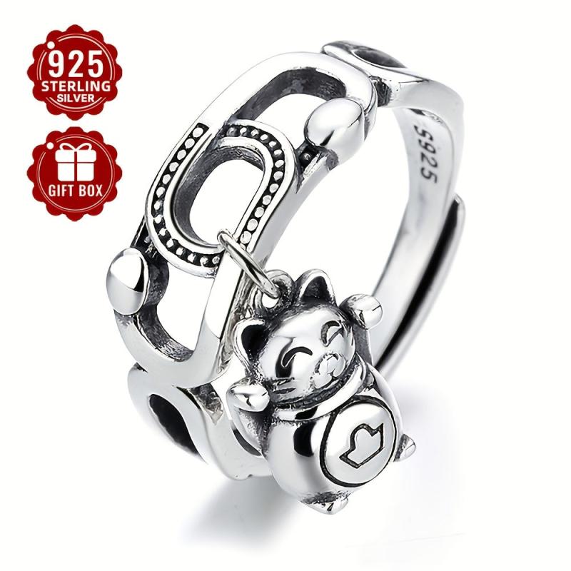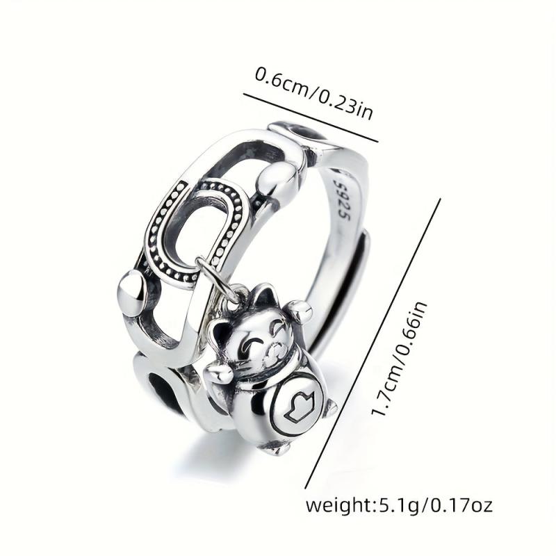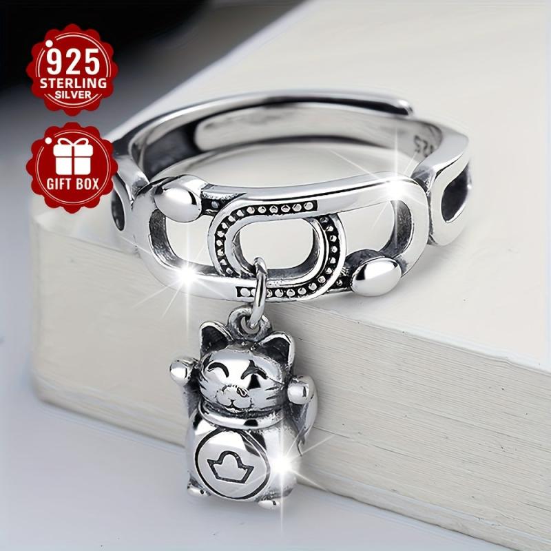 This S925 pure silver ring features a vintage style lucky cat design, perfect for daily wear, travel, and outings. A must-have accessory for travelers.