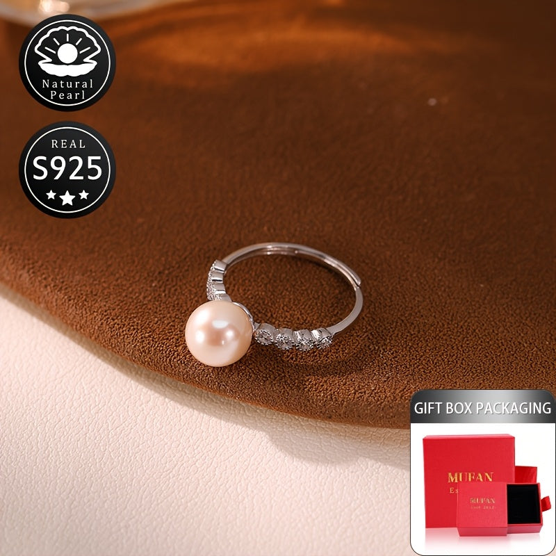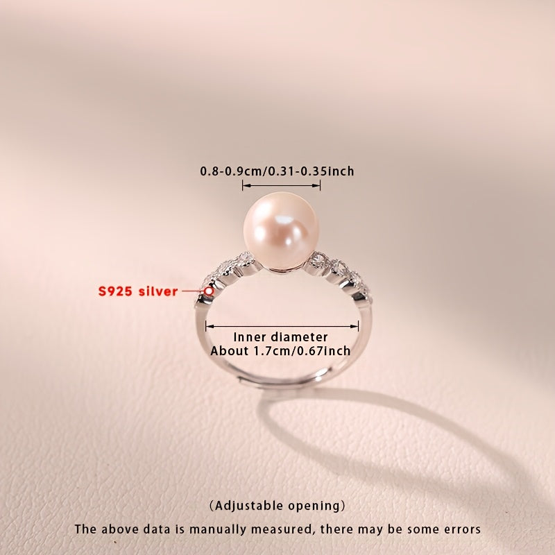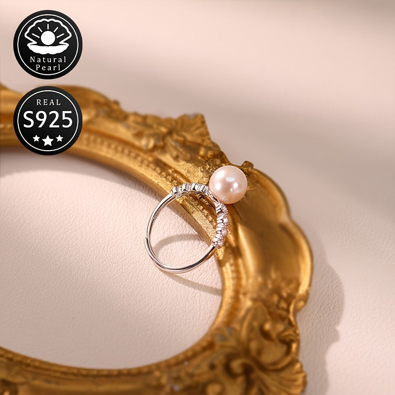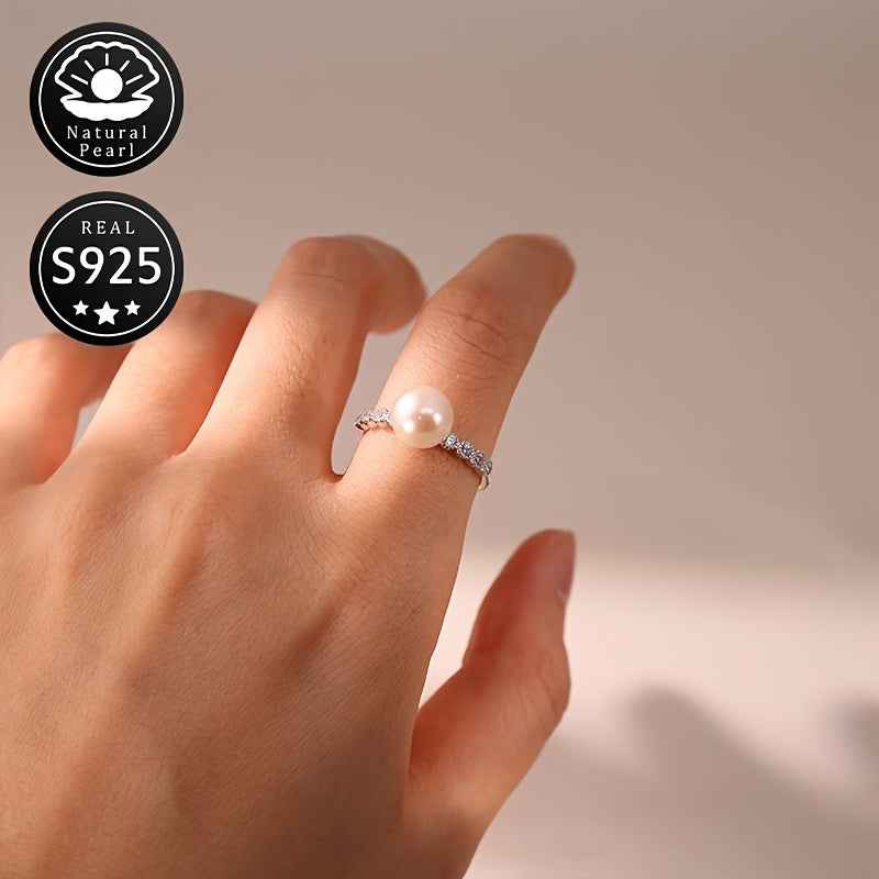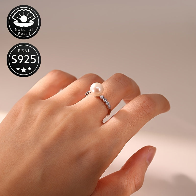 Elegantly designed S925 silver ring with a natural freshwater pearl, perfect for everyday wear and dating.