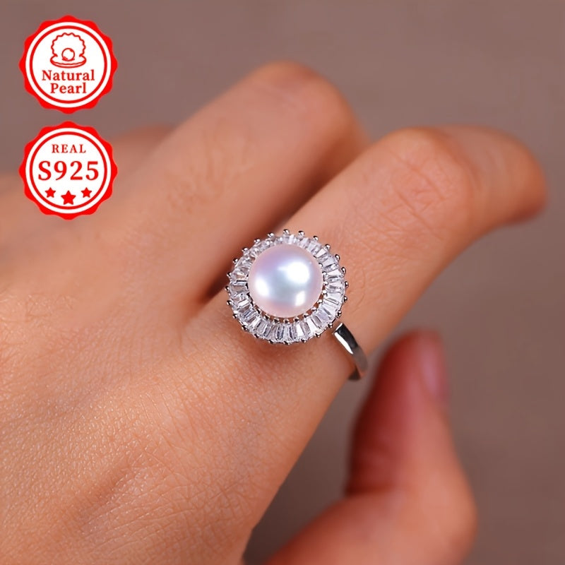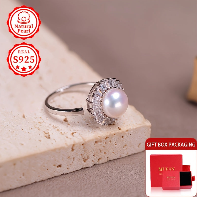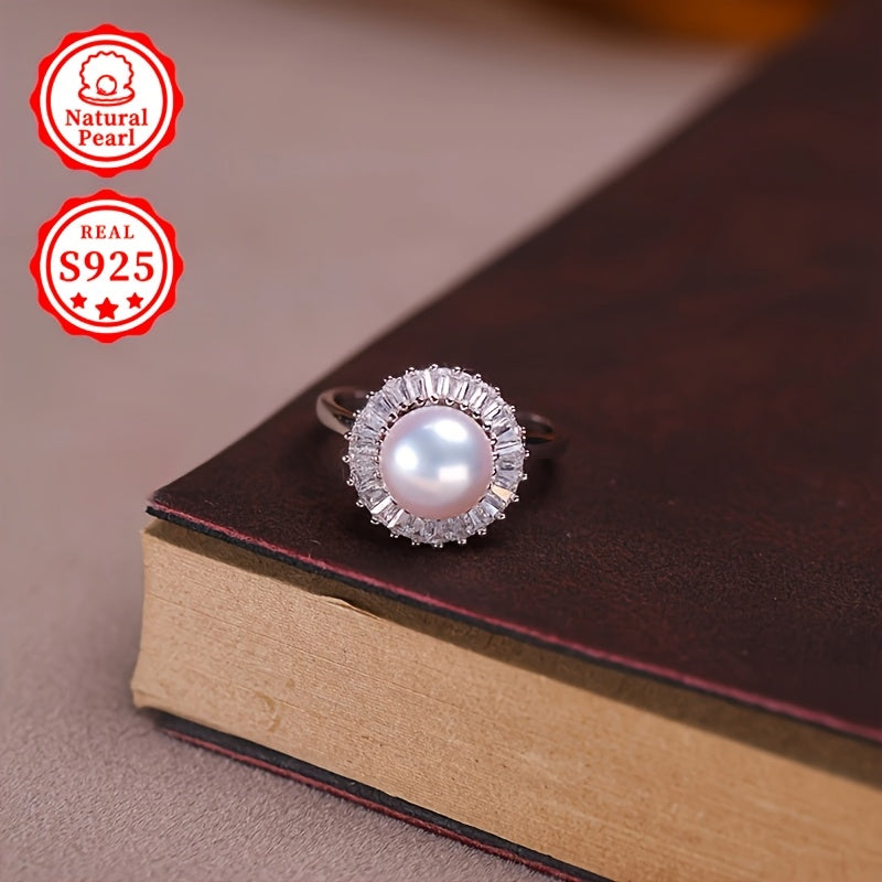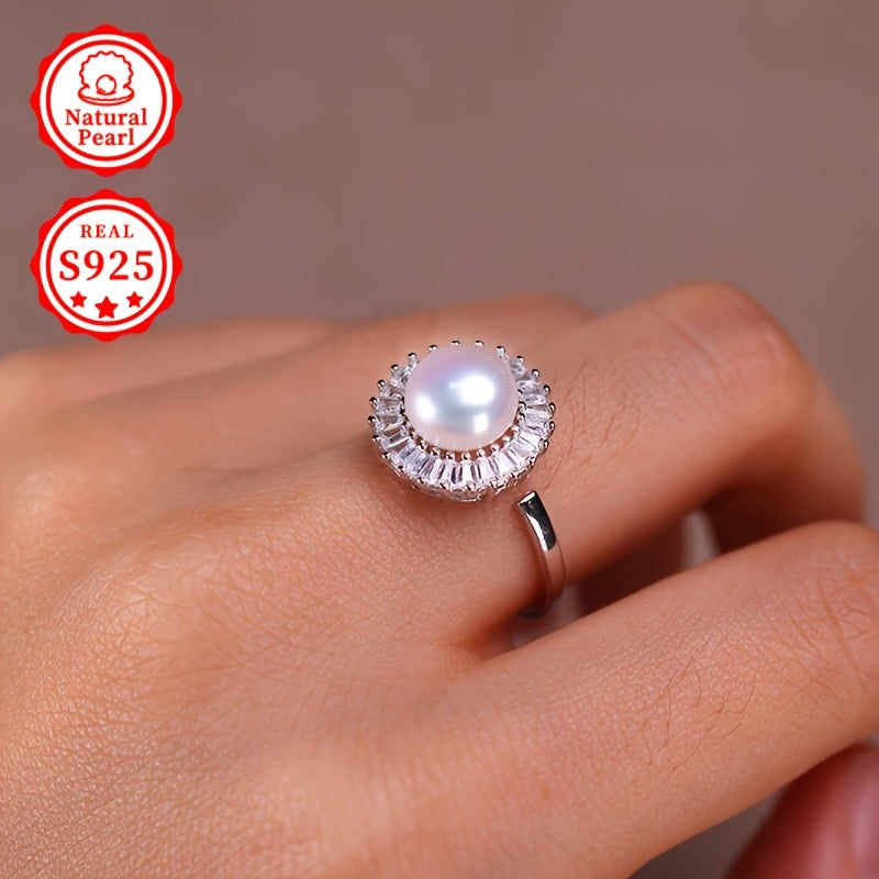 Elegant and stylish S925 silver ring with a flat round natural freshwater pearl. The ring is adjustable to fit various finger sizes.