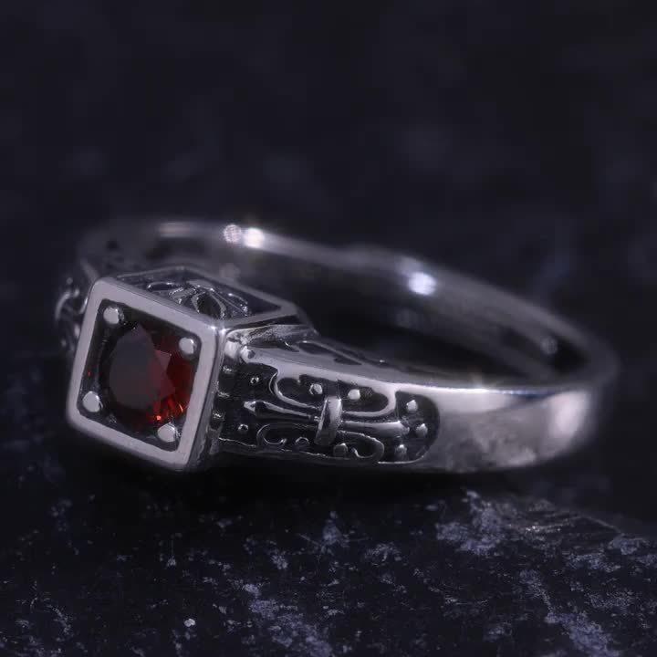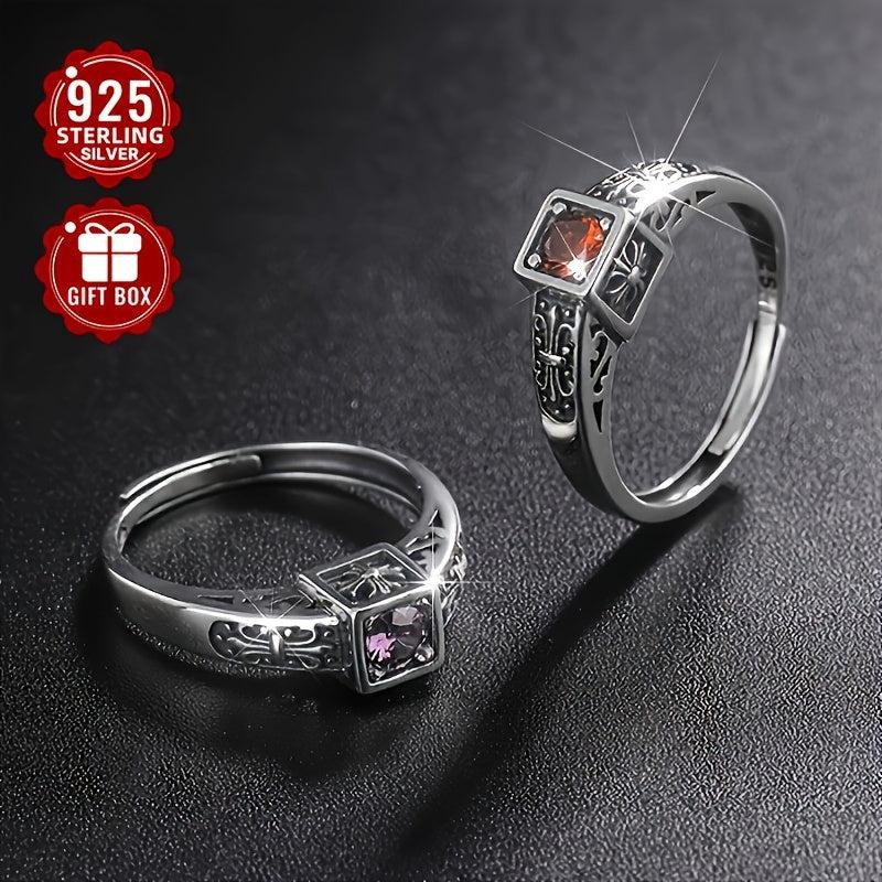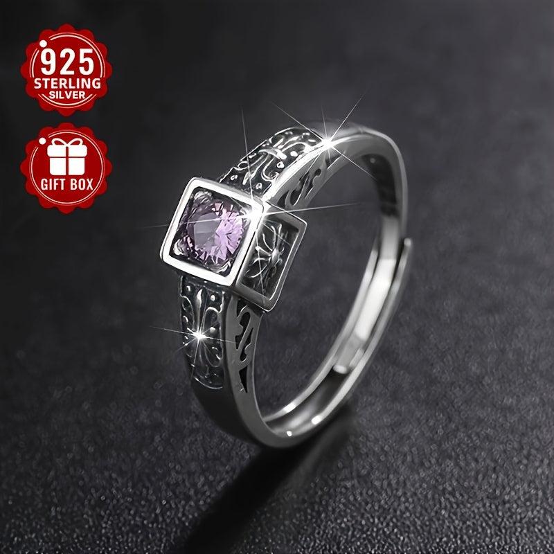 This personalized adjustable ring features a retro rapper style with a purple synthetic zirconia cross. Ideal gift for the go-getter woman in your life.