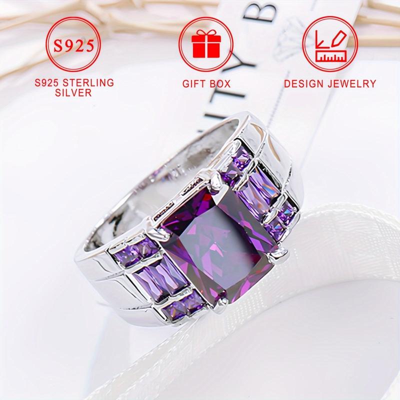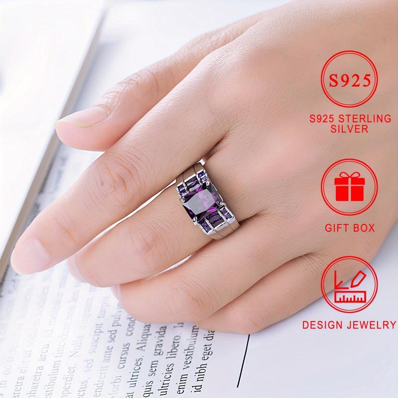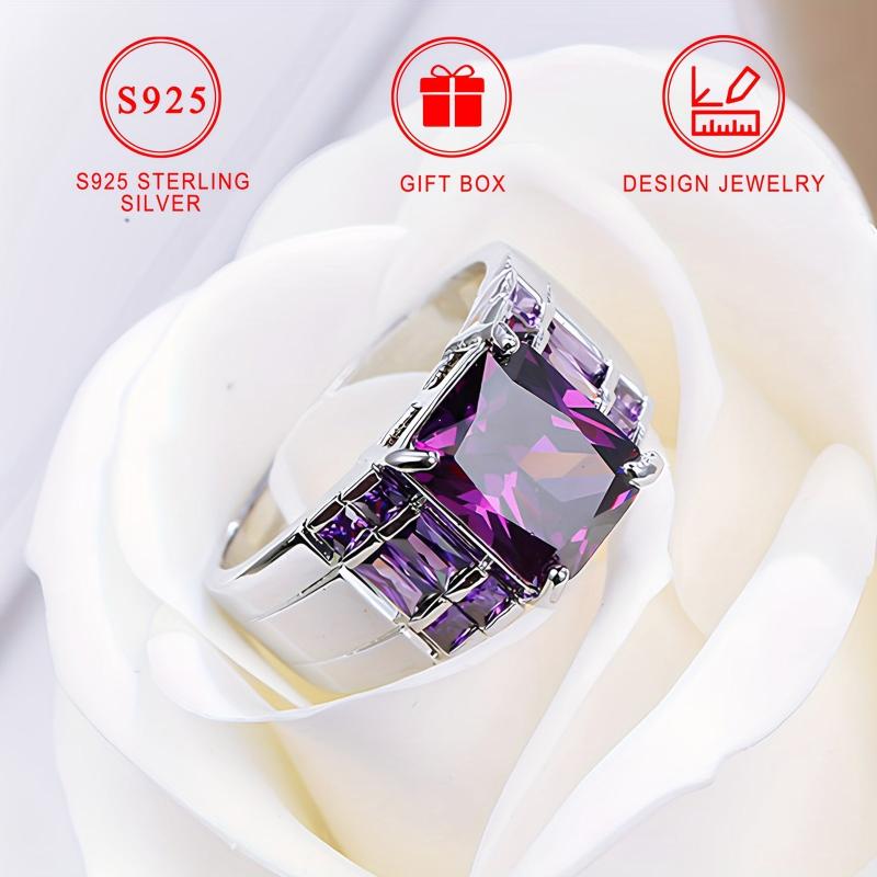 This stunning S925 silver ring features a square cut purple synthetic zirconia, perfect for engagements, weddings, and anniversaries. The holiday theme design makes it ideal for Thanksgiving gifts.