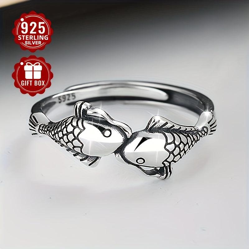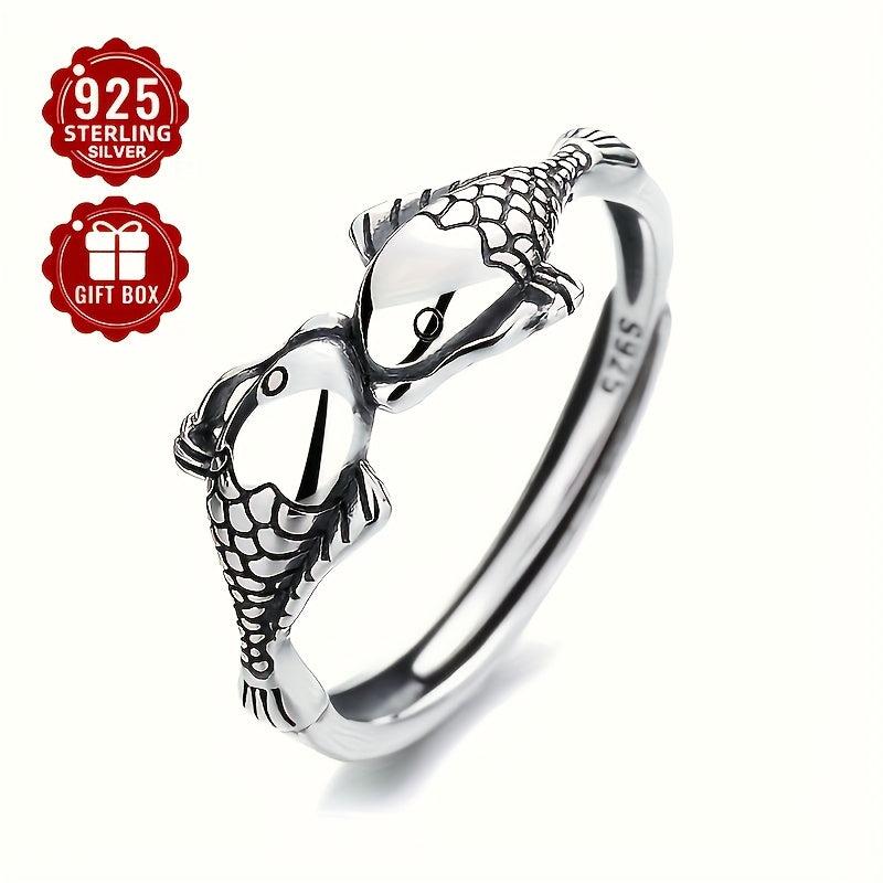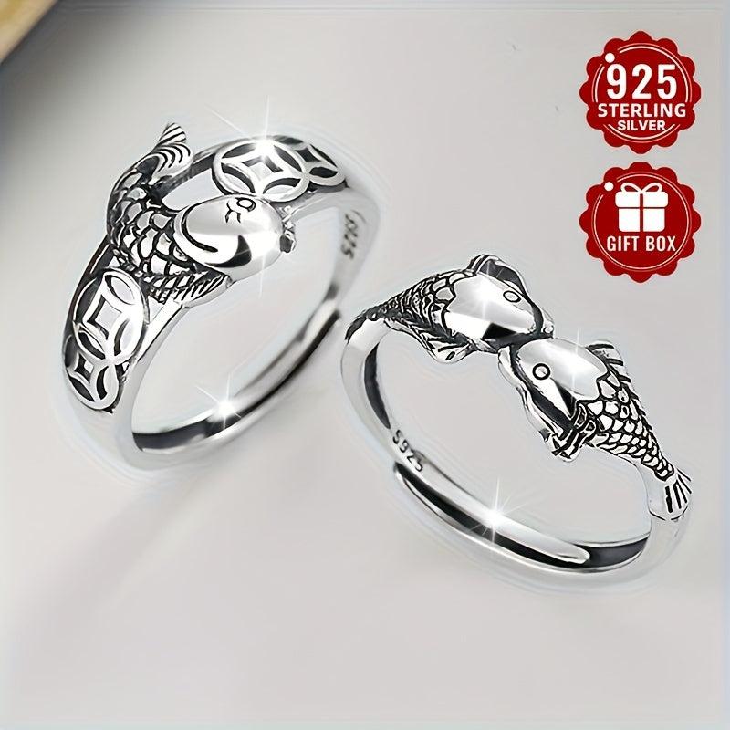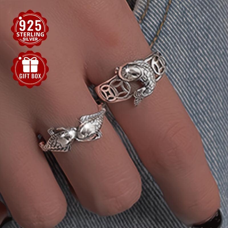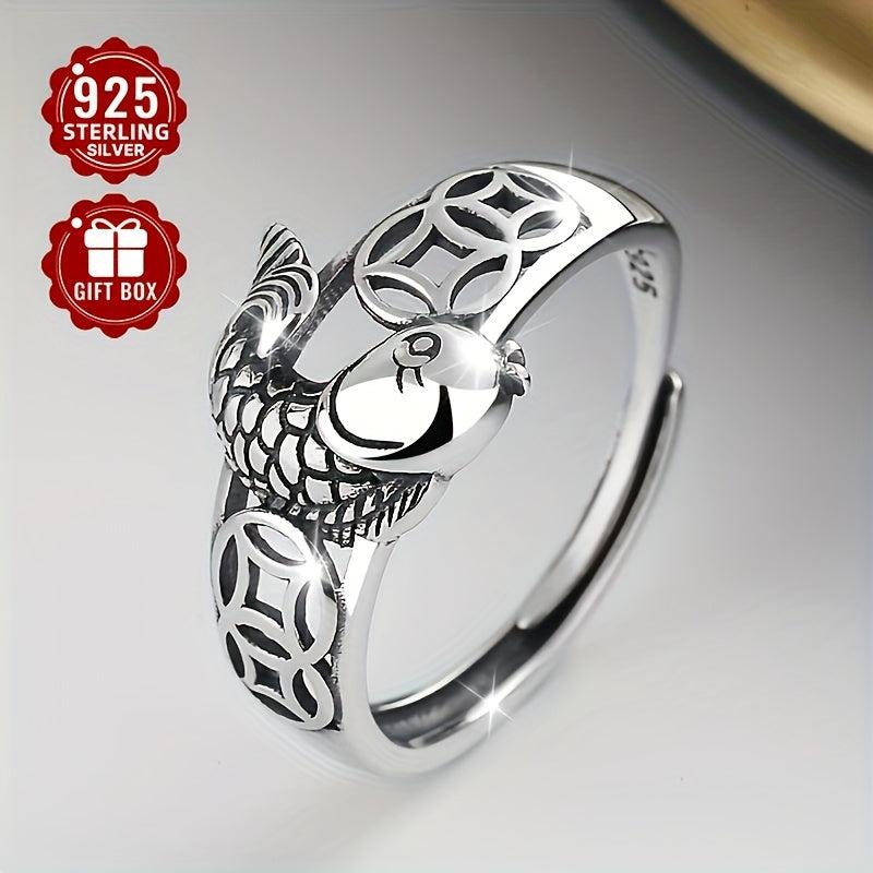 This retro-style ring features a unique design with ethnic copper coin and niche carp elements. Made of high-quality S925 sterling silver, it exudes a personalized and vintage charm.