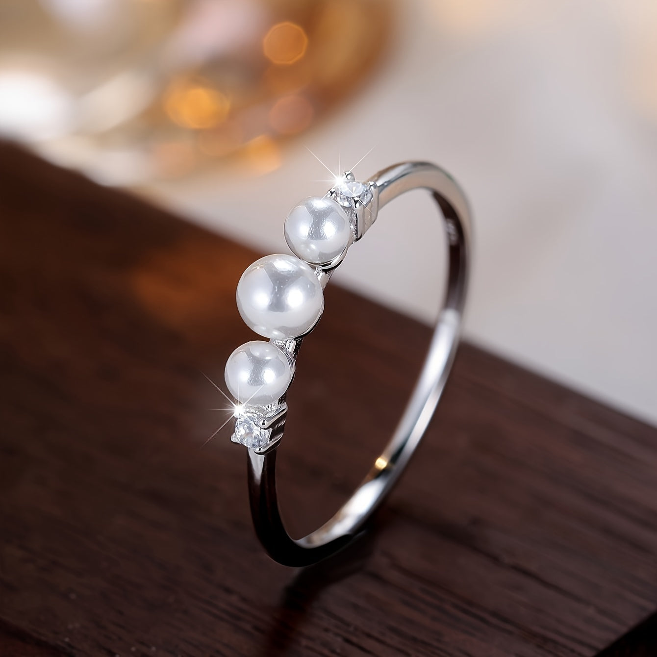 This S925 pure silvery ring features three pearls, exuding a retro charm suitable for daily wear. Weighs 2g.