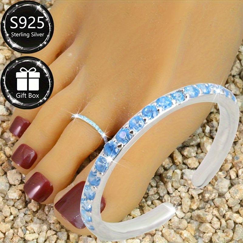 Get ready for summer with this S925 silver toe ring featuring a full row of synthetic zirconia. Perfect for beach holidays or summer parties.