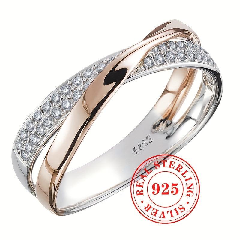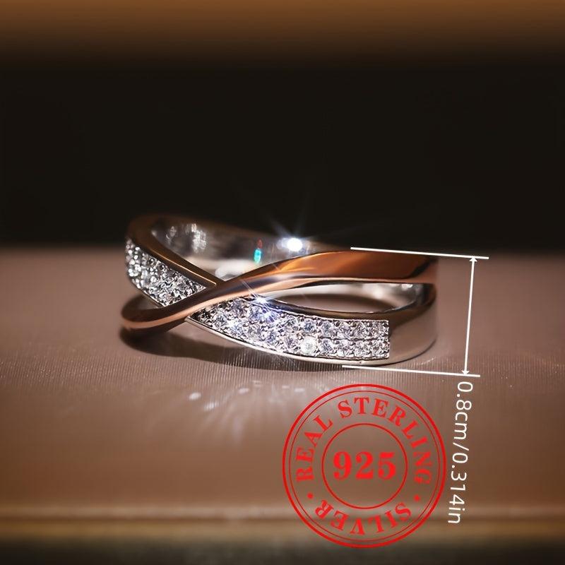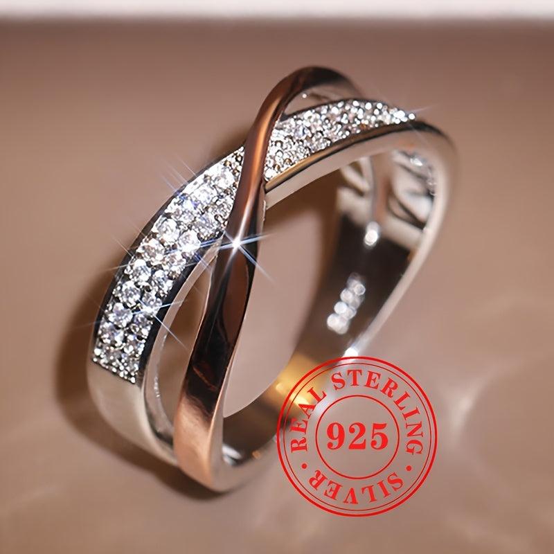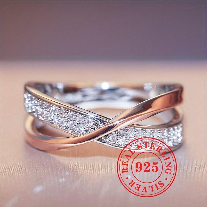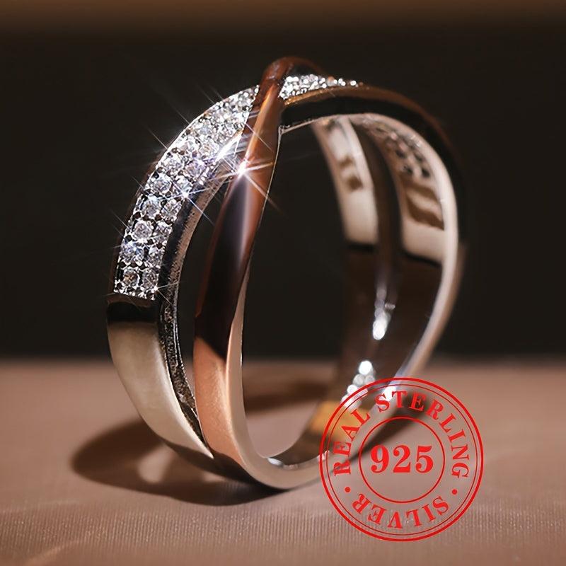 Elegantly designed S925 sterling silver ring featuring double cubic zirconia stones. Perfect for engagement parties, casual wear, and anniversary gifts.