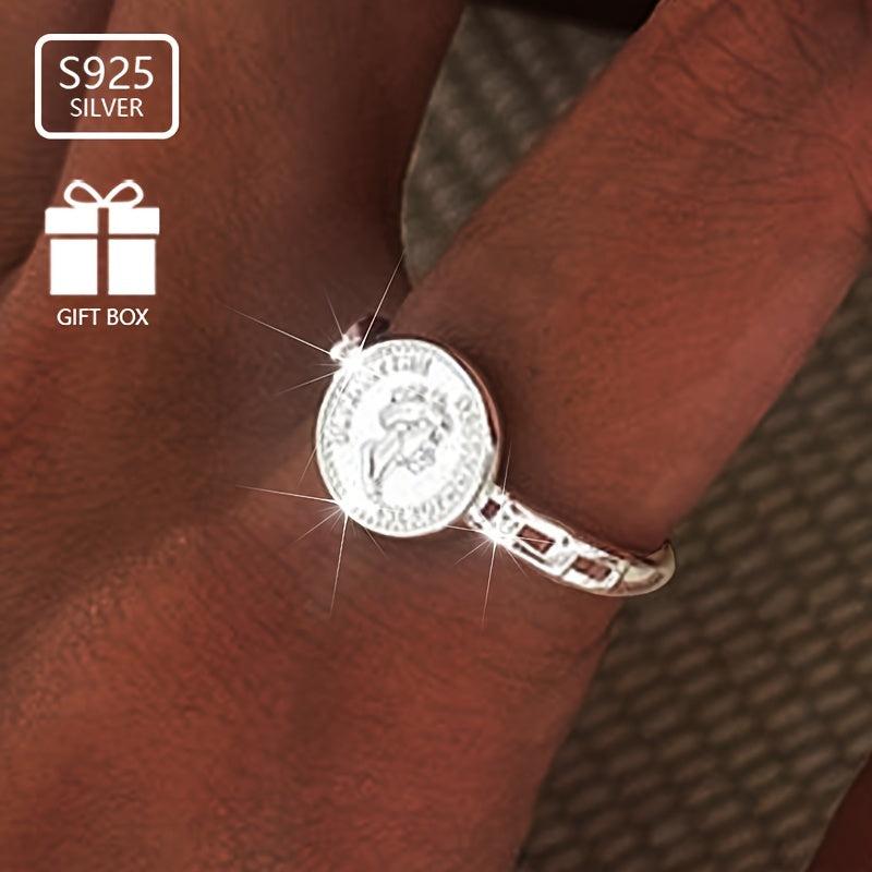 This 3D geometric openwork ring is a beautiful piece crafted from sterling silver, perfect for women.