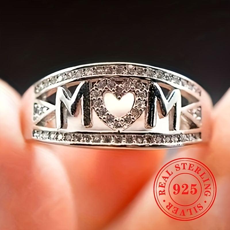 This elegant ring features a heart-shaped zirconia inlay on a 4g S925 sterling silver band. A perfect gift to show your mother how much you love her.