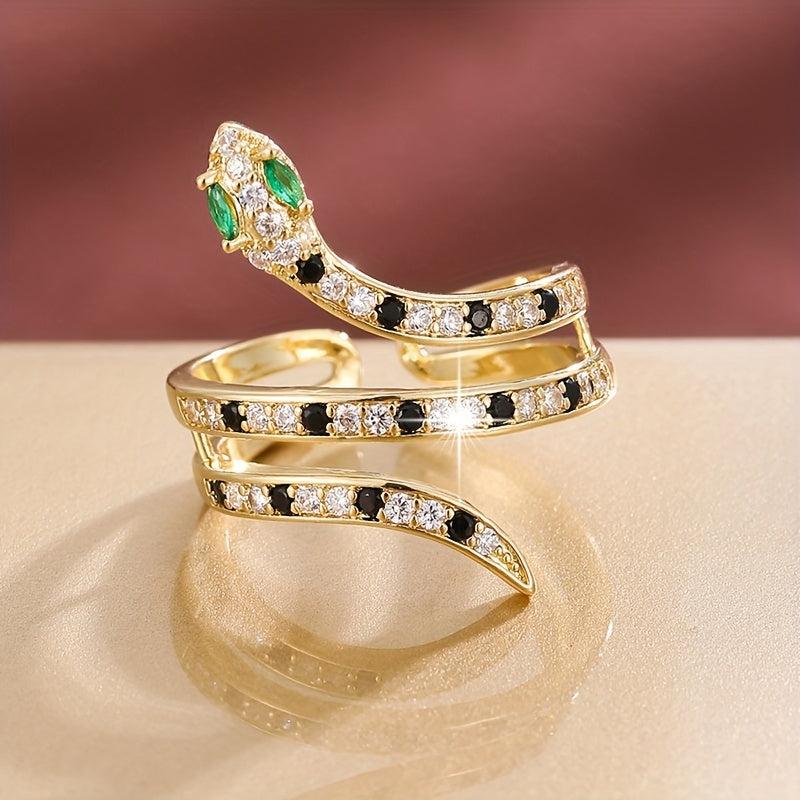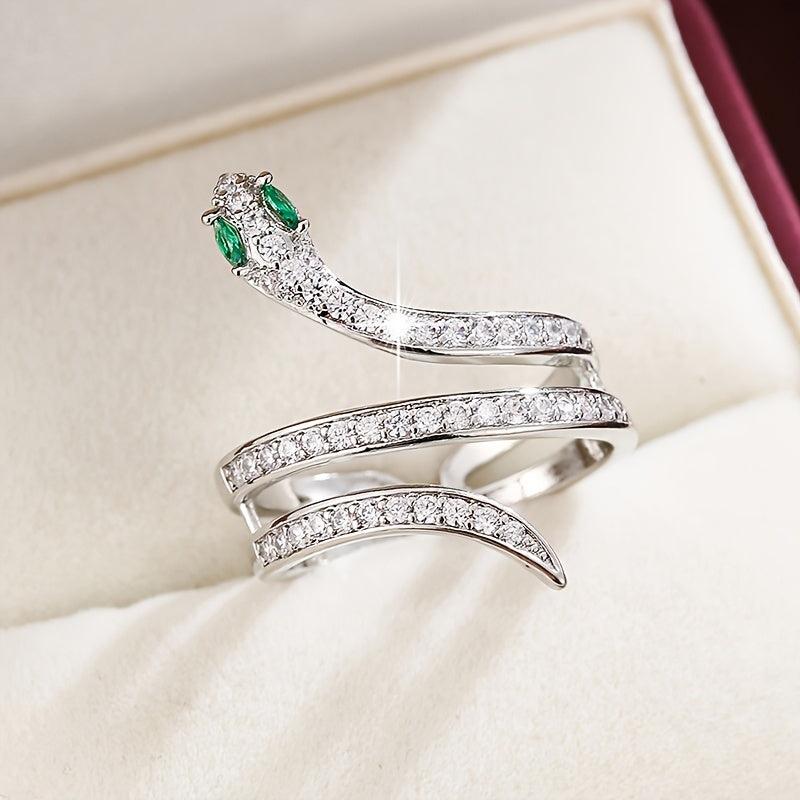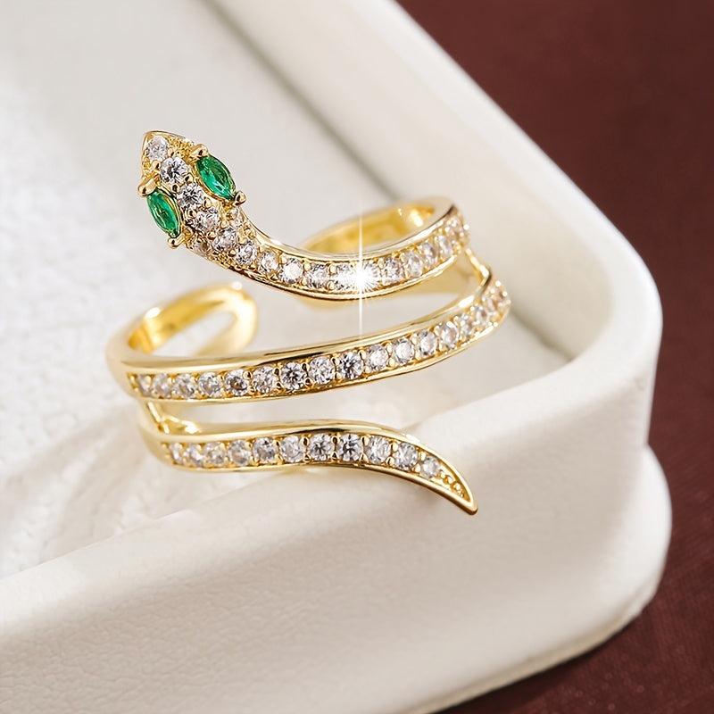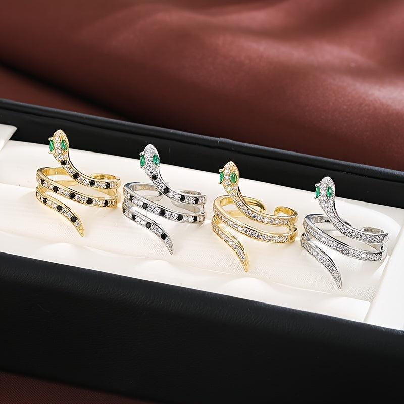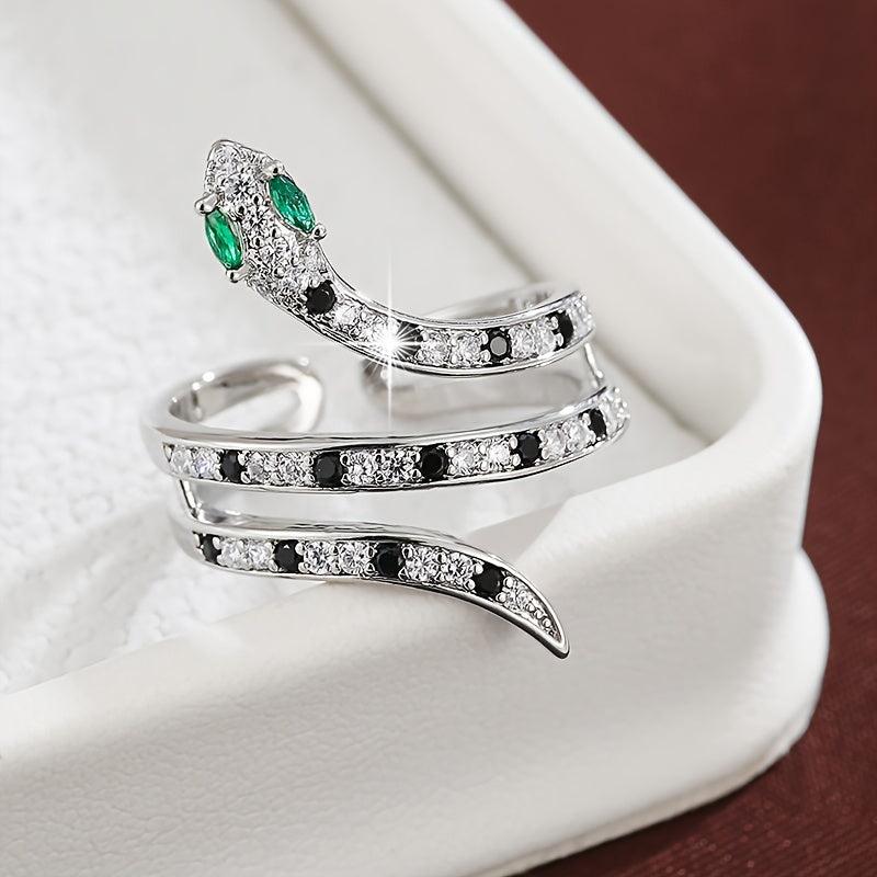 Embrace elegance with this open ring featuring a unique snake design set with sparkling zirconia. Perfect for adding a touch of sophistication to any outfit.