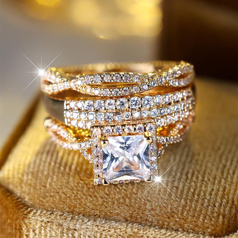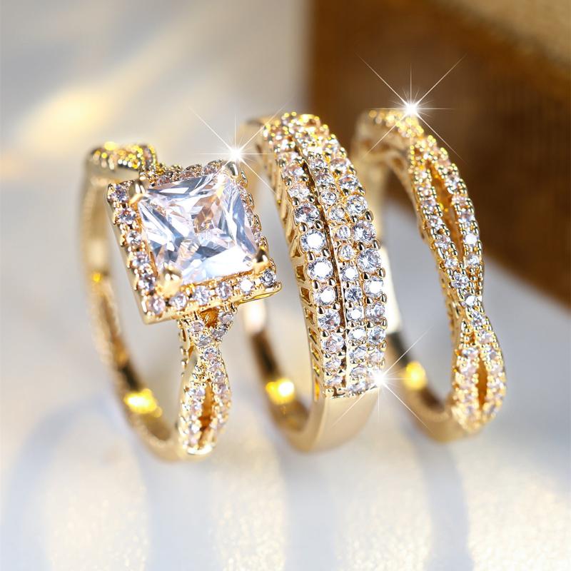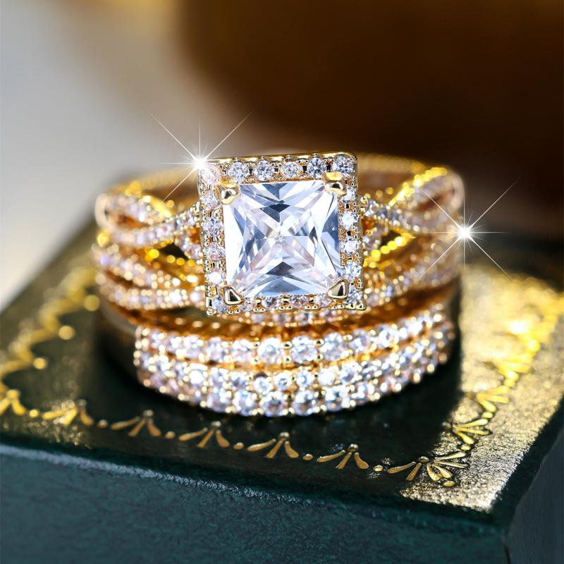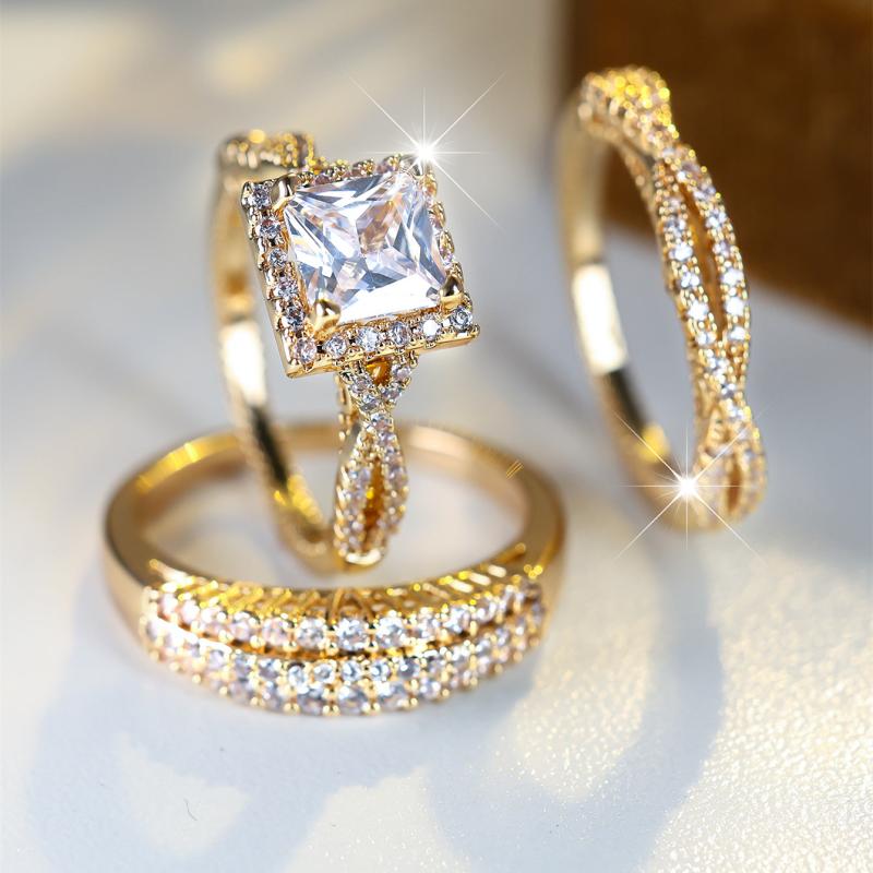 This stunning three-piece wedding ring set is perfect for your special day. Sparkling and elegant, it will add a touch of glamour to your engagement party and wedding.