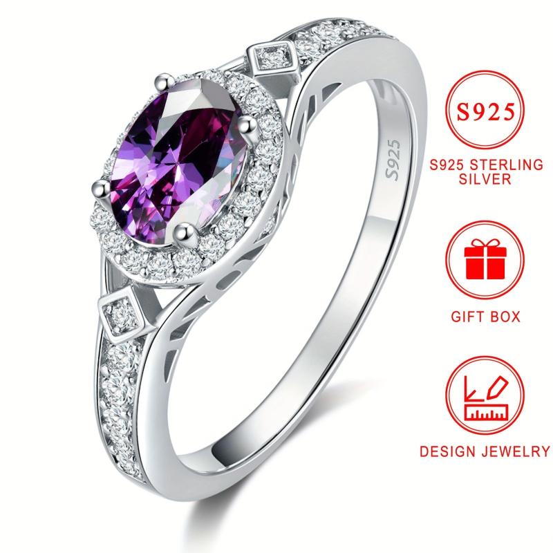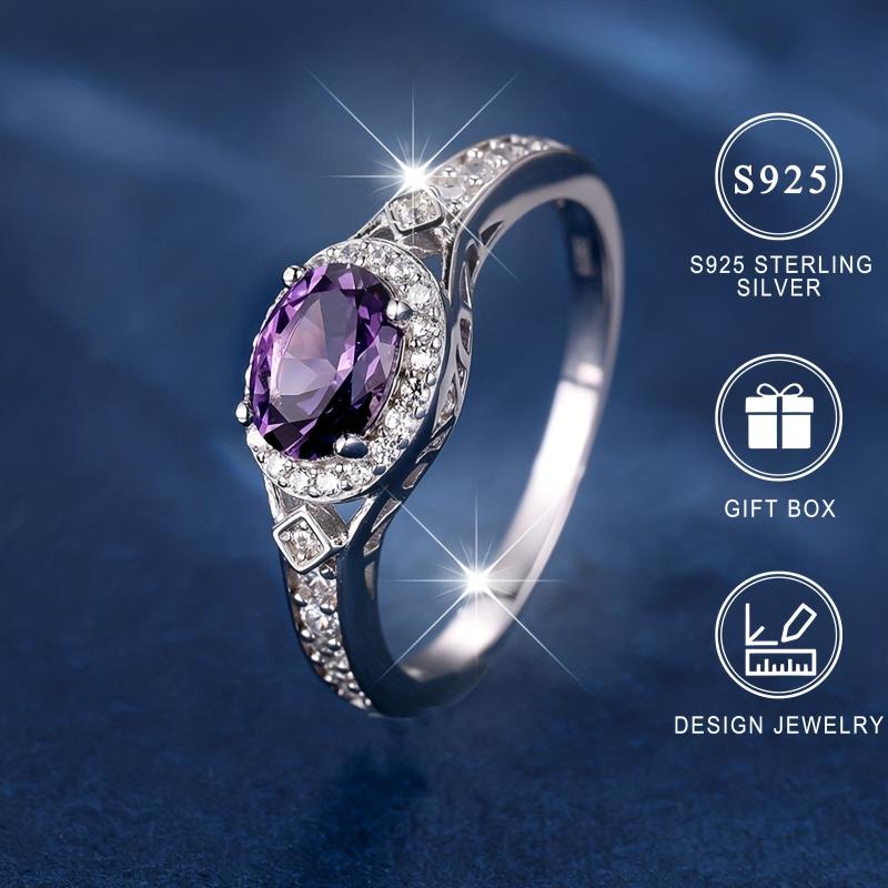 Add a touch of elegance with this stunning 925 Sterling Silver ring featuring a sparkling purple synthetic zirconia. Perfect for any occasion, from dinner parties to cocktail events or as a fine promise jewelry piece.