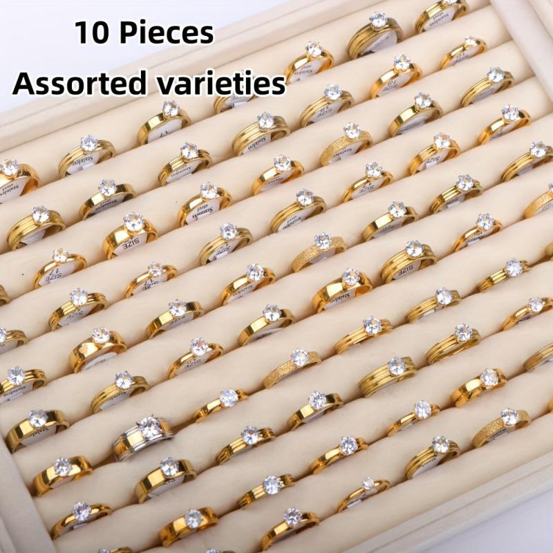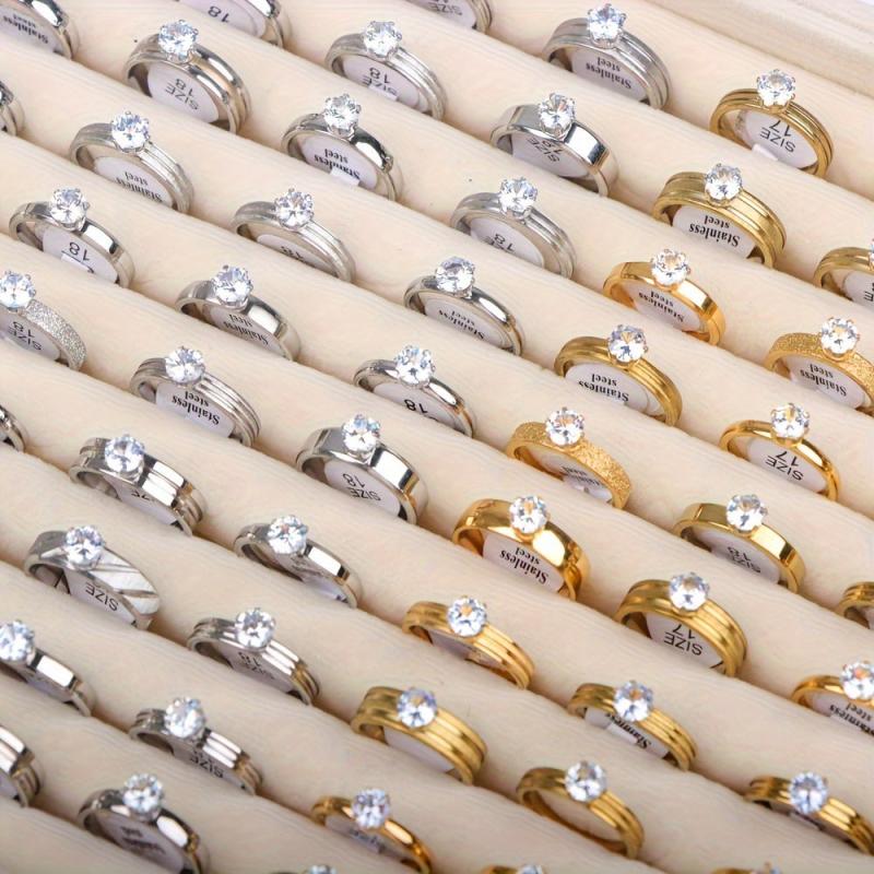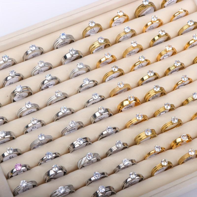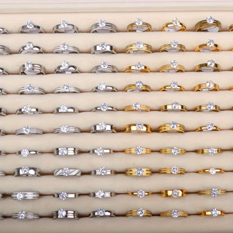 Elegant set of 10, 20, or 30 stainless steel rings with inlaid rhinestones. Perfect for proposals, engagements, or anniversaries.