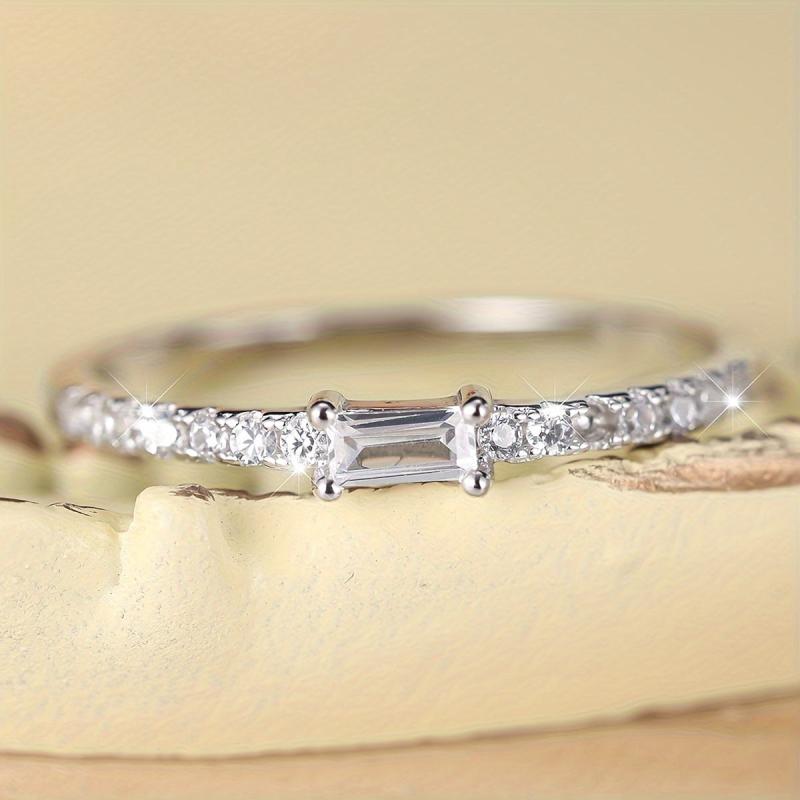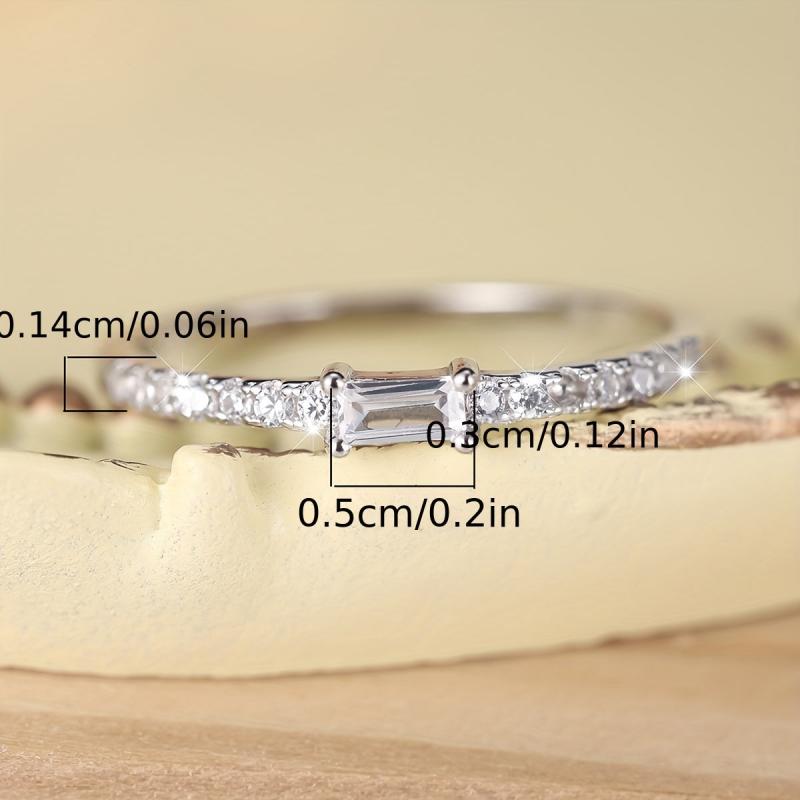 This exquisite sterling silver ring features a large square synthetic zirconia that sparkles radiantly, making it perfect for engagement and weddings. The elegant rectangular design adds a touch of sophistication to any outfit.