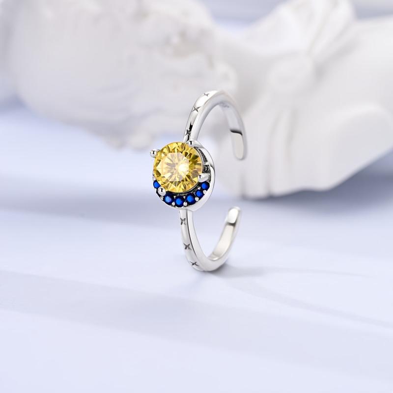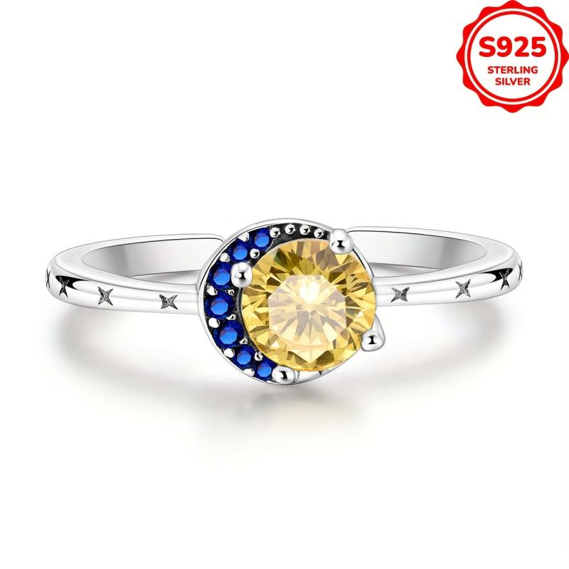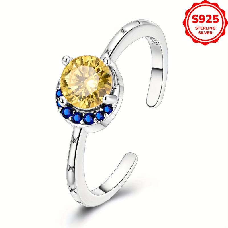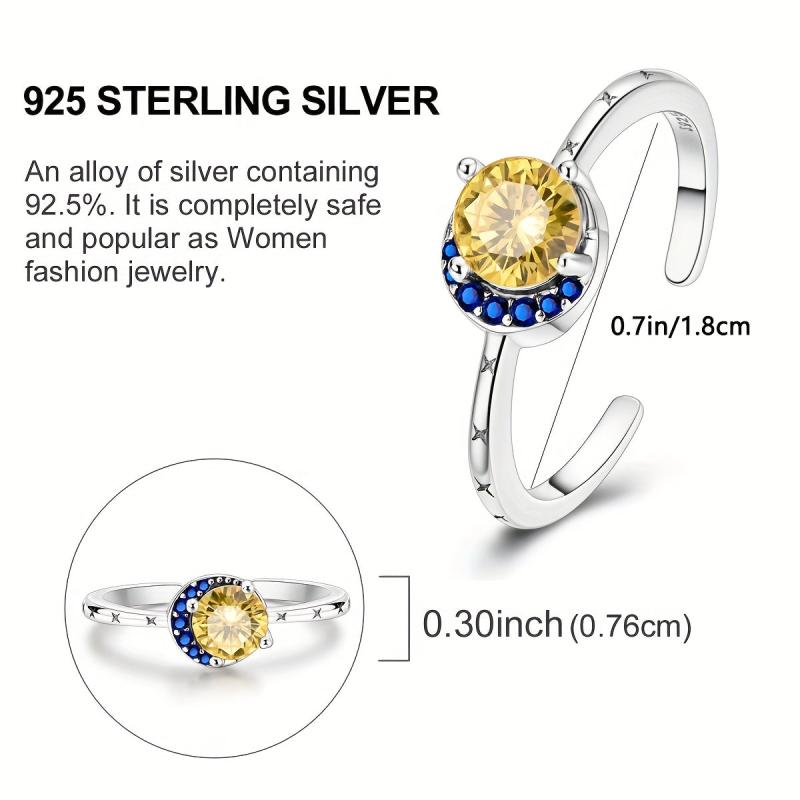 This 925 sterling silver ring features a charming sun and moon design, perfect for weddings, engagements, birthdays, and special occasions.